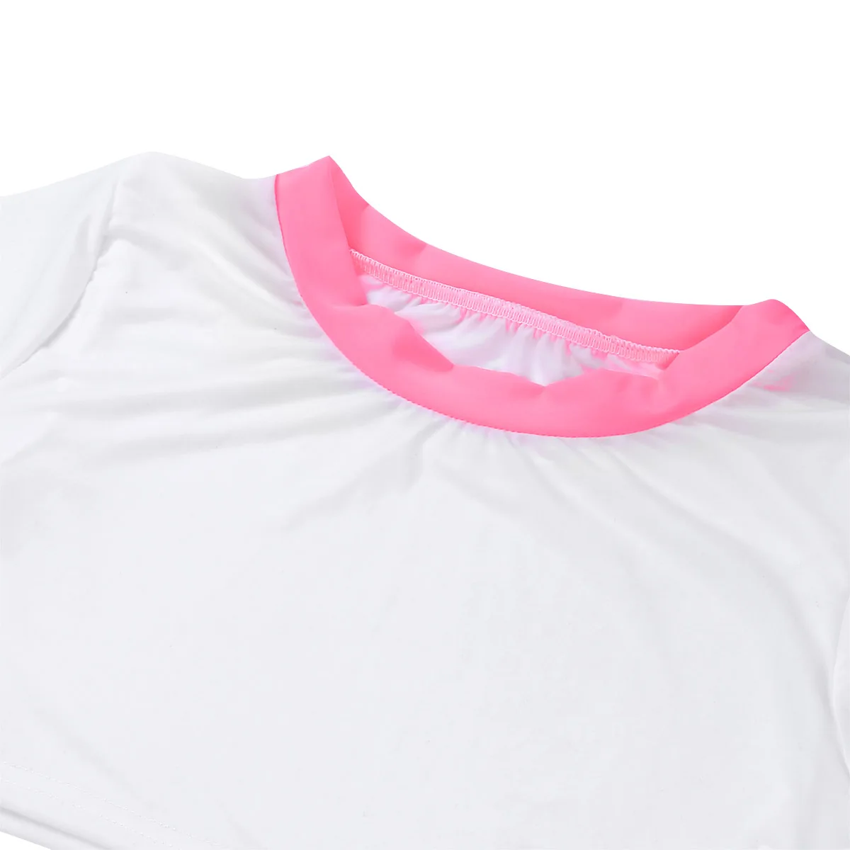 Короткие рукава и круглый вырез; Топы с полосками на рукавах и воротнике.