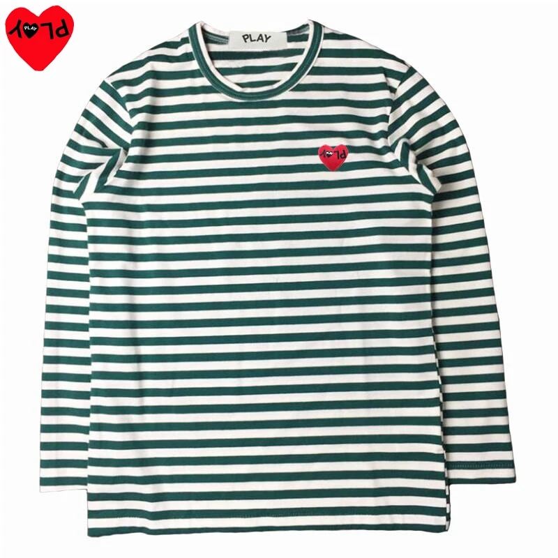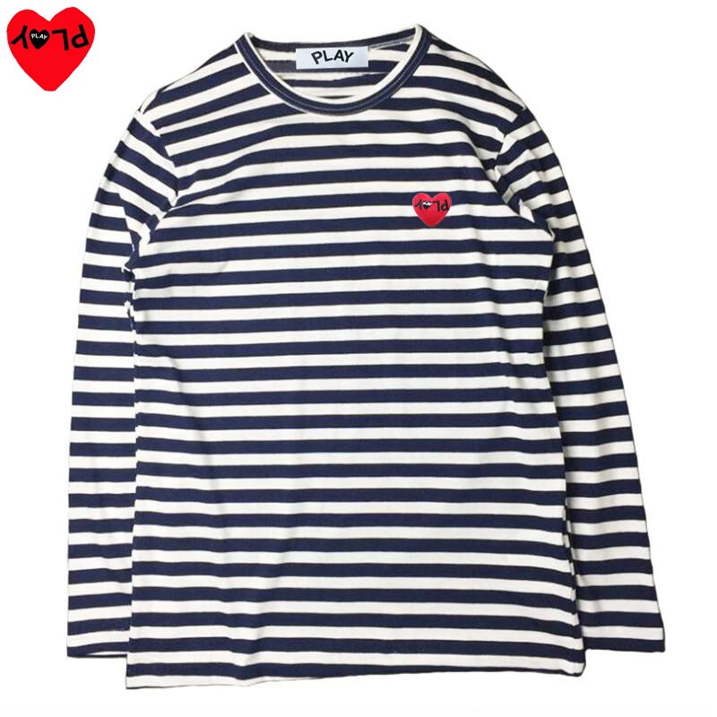 PLAY мужская полосатая футболка с буквенным принтом, вышитым сердцем, хлопковая Футболка с круглым вырезом, двухцветная полосатая футболка с длинным рукавом, весна-осень