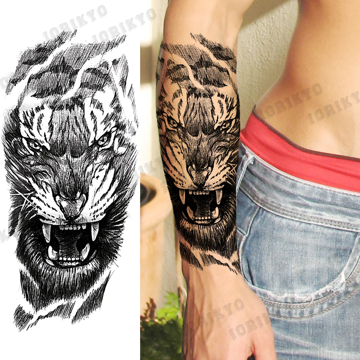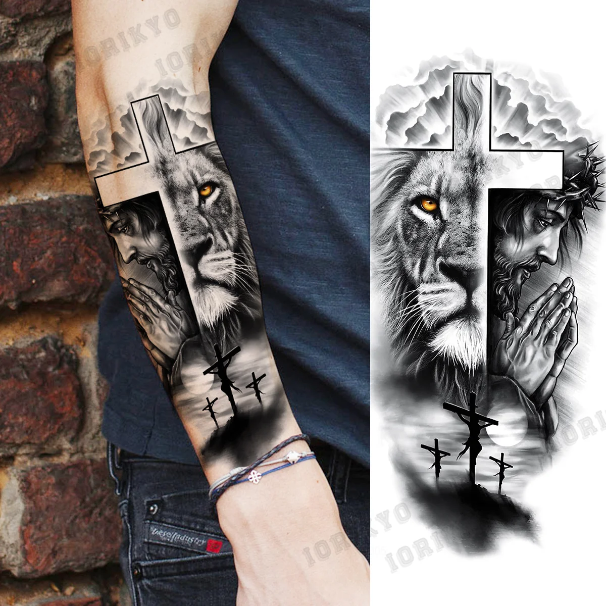 Реалистичные косички маори Тотем предплечье Временные татуировки для мужчин взрослых лев тигр крест череп поддельные татуировки боди-арт моющиеся тату