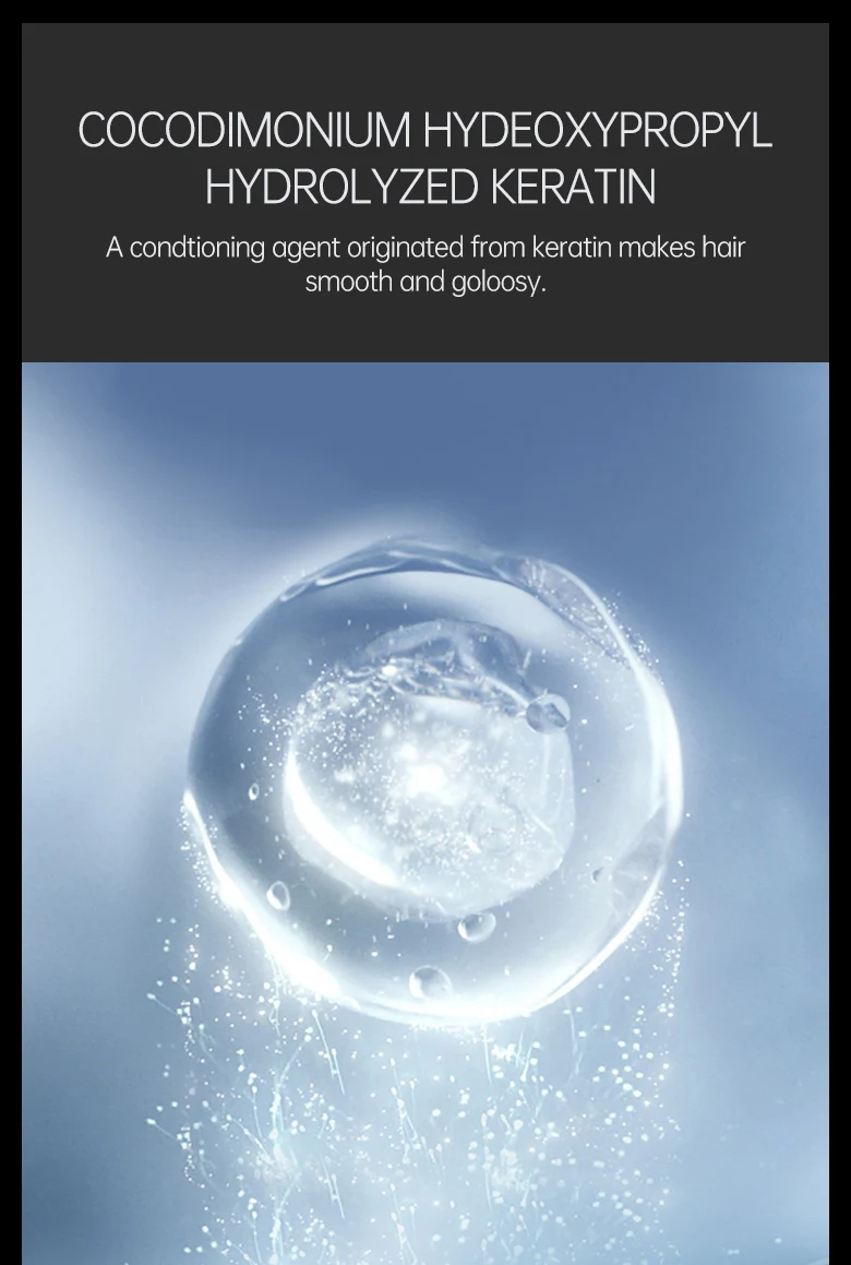 Акондационный агент, возникший из кератина, делает волосы гладкими и густой.