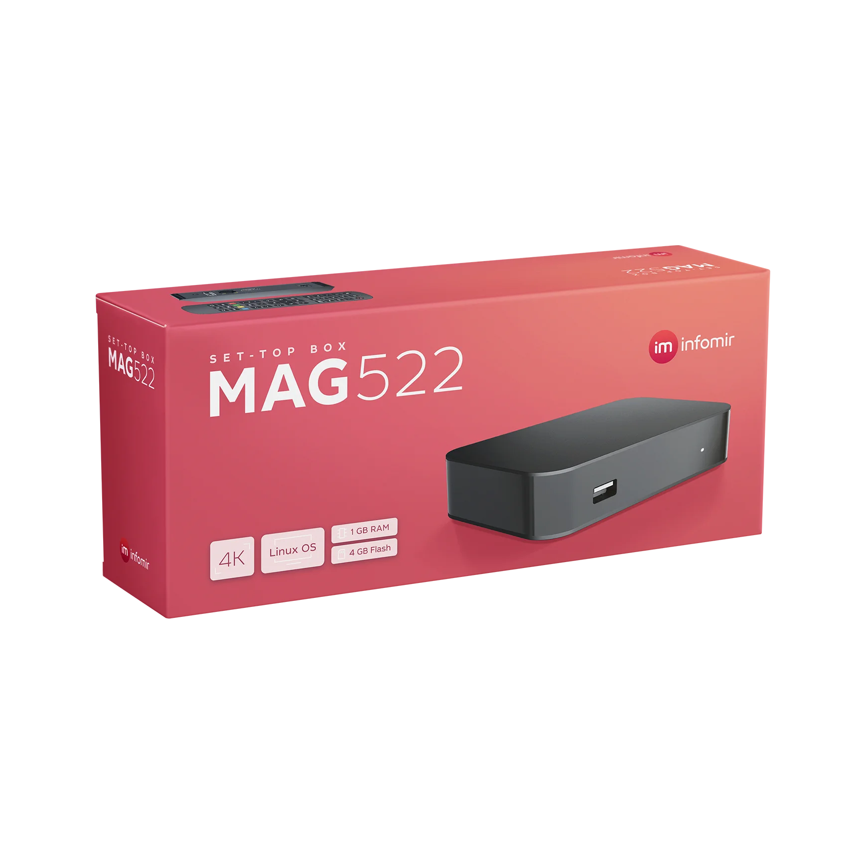 Linux 4,9, чип Amlogic S905X2, инфаракадный пулт ДУ, подделка 4K и HEVC, 1 ГБ RAM, 4 ГБ eMMC, USB 3,0x1, USB 2,0 1x1 беспроводной Wi-Fi-мод 2,4 и 5 Гц (поло для жидкости MAG522w3), Белый HDMI 2,1.