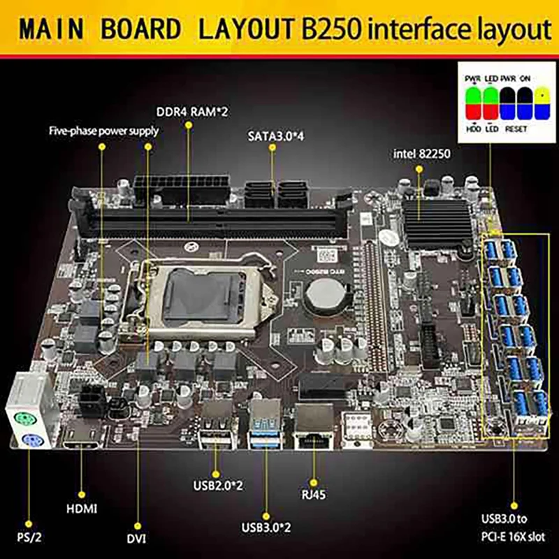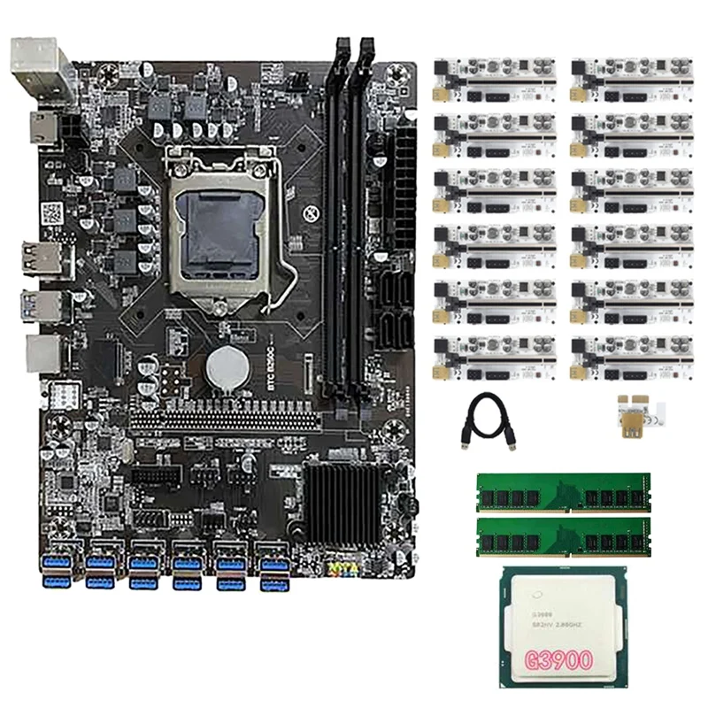 Комплект материнской платы B250C BTC Mining с 12XVER010-X PCIE Riser Card + 1XG390 0 CPU + 2X DDR4 RAM LGA1151 DDR4 DIMM 12 USB3.0