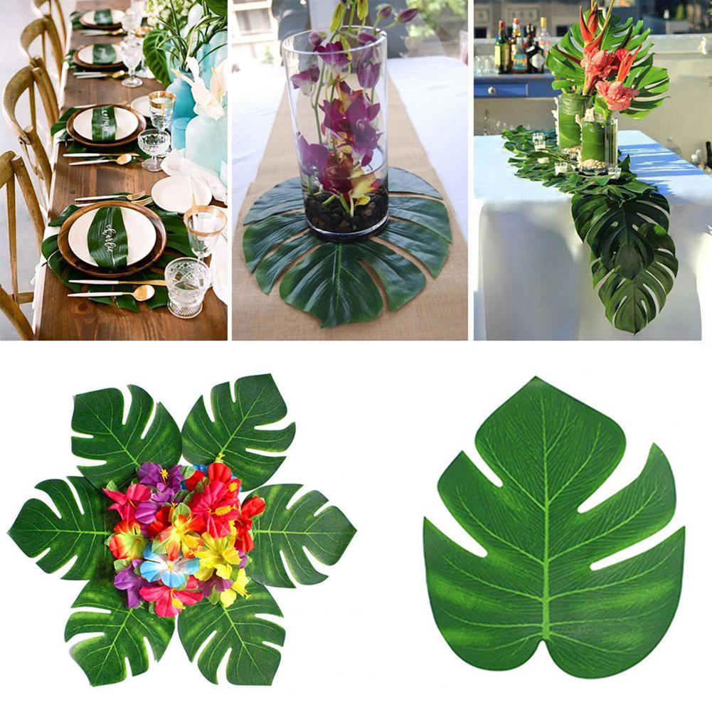 12 шт./упак. Искусственных Листьев Имитация широкий Применение ткань зеленый поддельные пальмовых листьев Декор для дома и сада искусственные растения