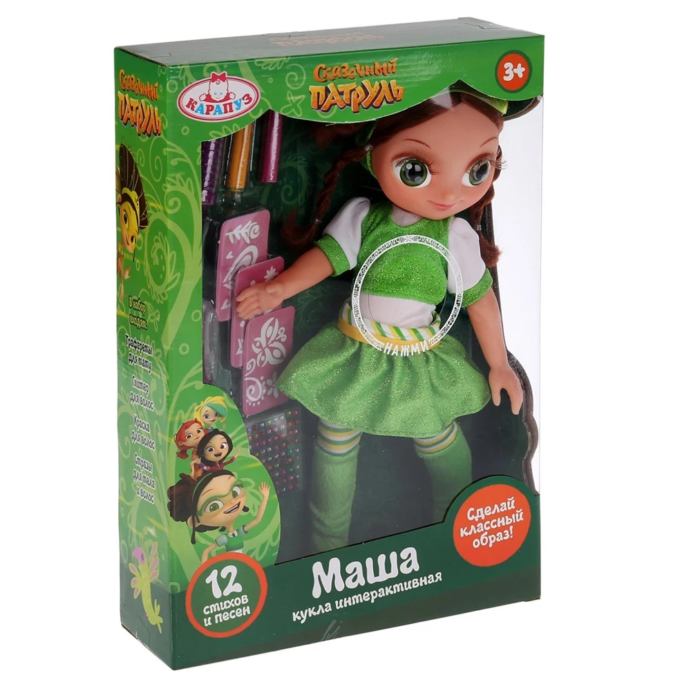 Кукла Маша с набором для волос станет лучшей подругой для ребёнка. В игрушку встроен звуковой модуль, на который записано 12 весёлых стихов и песен. На кукле надеты платье, лосины, туфельки в тон, в волосах вплетена лента, и всё это можно снять. В комплекте прилагается тату, краска и стразы для создания стильной причёски.