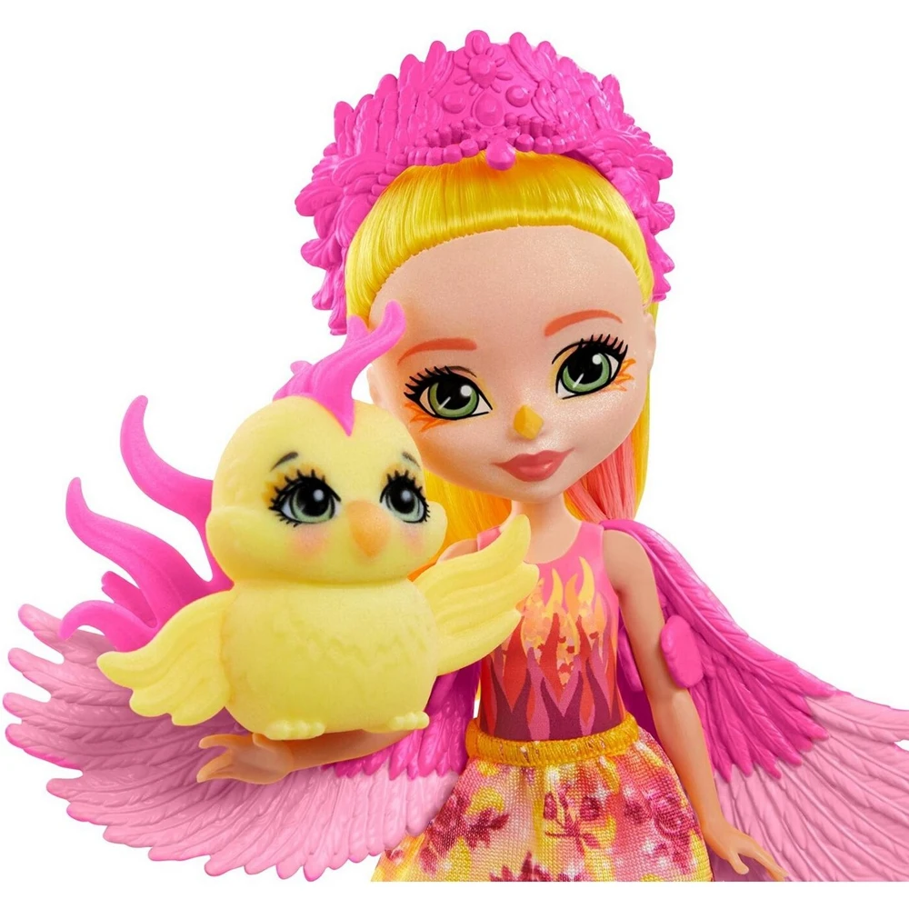 Познакомьтесь с Энчантималс , милыми девушками, которые невероятно похожи на своих питомцев и имеют с ними особую связь. Кукла Фалон Феникс и ее любимец Санрайз очень похожи и никогда не расстаются! Дети будут очарованы Фалон, ее длинными огненно-рыжими волосами и великолепными крыльями. Феникс Санрайз нисколько не уступает своей подруге: большие выразительные глаза, задорный чубчик и хорошенький хвостик покорят сердце любого! Соберите коллекцию этих прелестных кукол с питомцами, чтобы построить мир Энчантималс , полный дружбы и единства с природой! Каждая кукла продается отдельно.Погрузитесь в волшебный мир дружбы и приключений вместе с героями Энчантималс из королевской коллекции