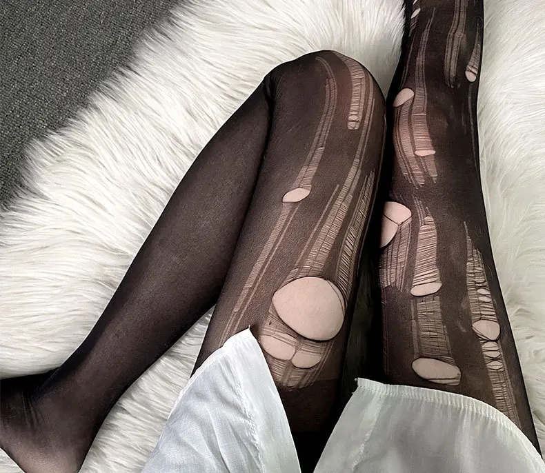 Disposable Sexy Stockings Fun Hand Torn Silk Stockings Black Silk Thin Perforated Pantyhose Temptation Women's Tight Pantyhose