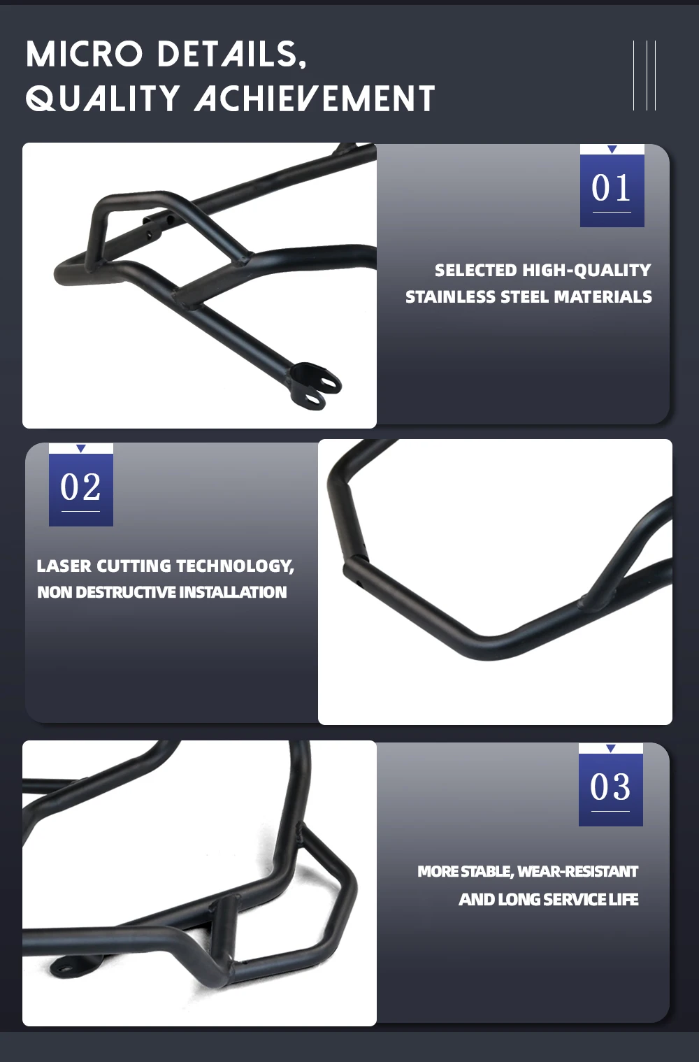 Эффективно защищает ваш мотоцикл, предотвращает повреждение двигателя вашего автомобиля, а также играет роль украшения вашего мотоцикла.