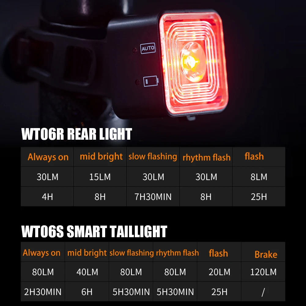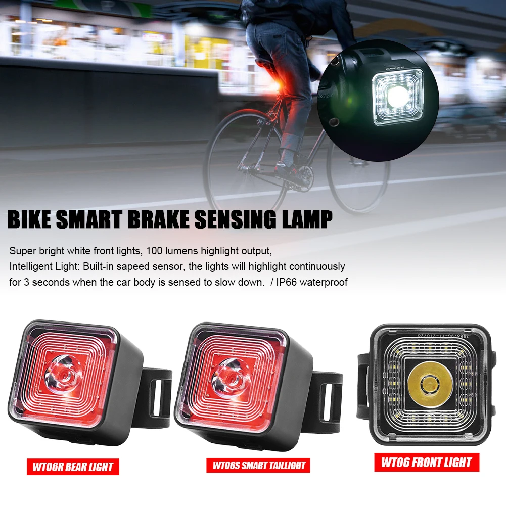 100 люмен велосипедный светильник s умный тормоз зондирования задний фонарь 5 передач USB зарядка Водонепроницаемый головной светильник и задний светильник наборы