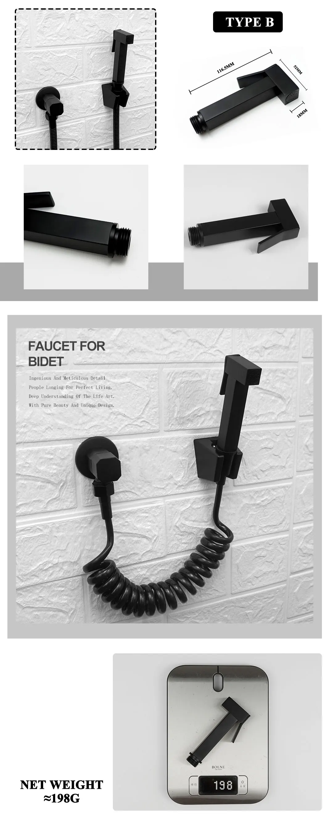 Твердый латунный Туалет ручной Shattaf биде опрыскиватель душевая головка аксессуары для ванной комнаты матовый черный гигиенический набор биде для душа