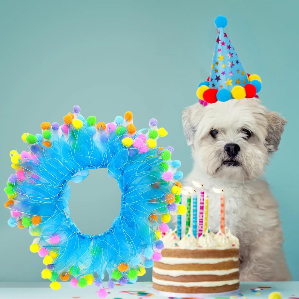 2 шт./компл. головной убор на день рождения любимчика милые вечерние наряды костюм Кепка с емблемой щенка чистая пряжа воротник набор шарик-помпон