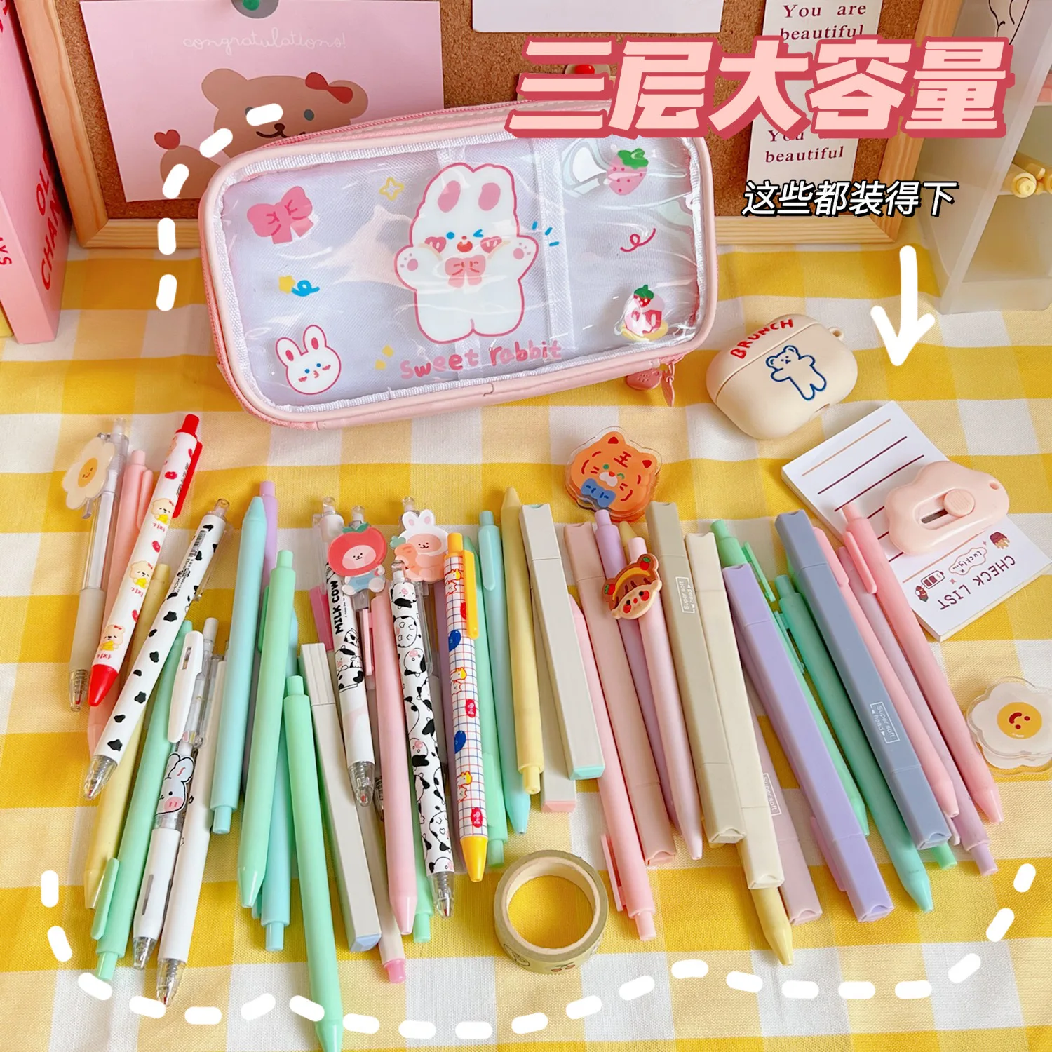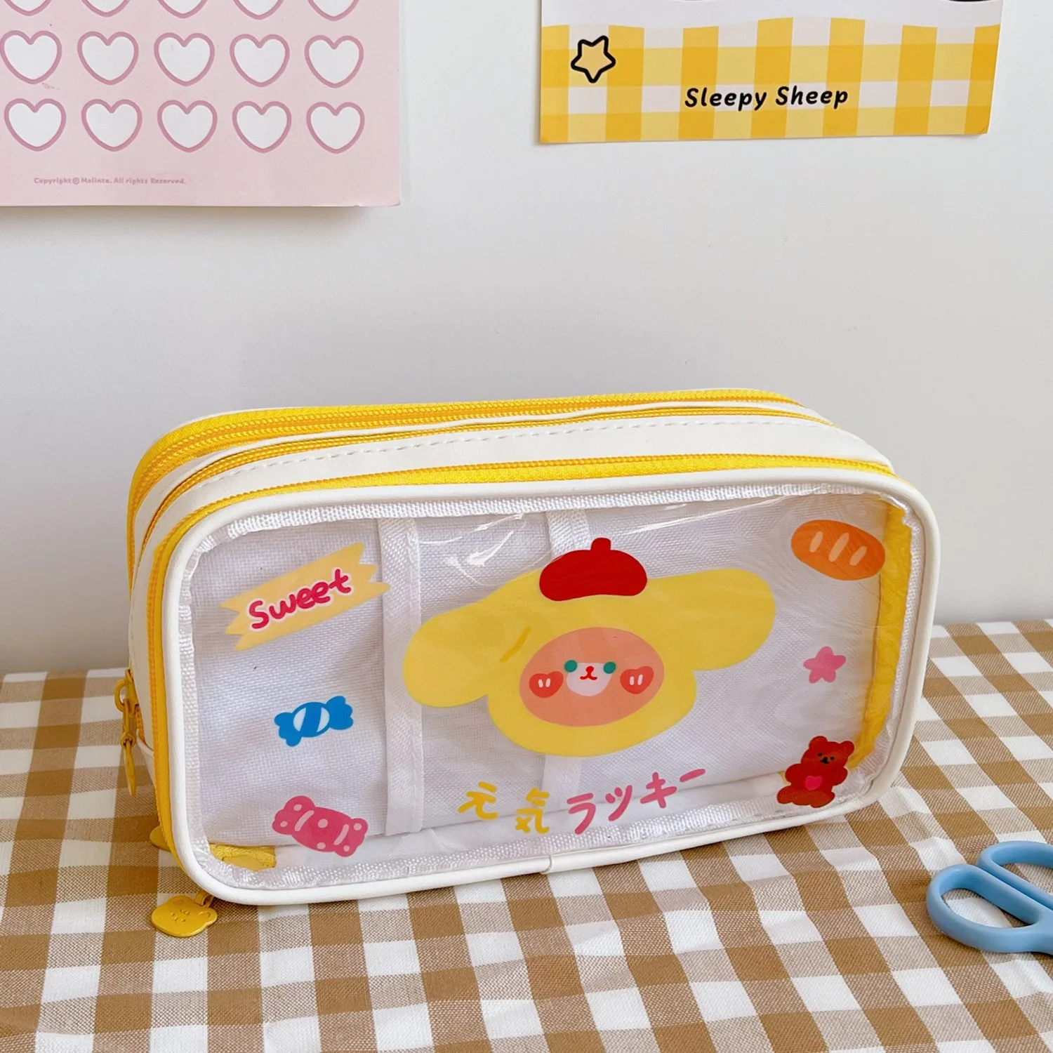 3 Слои милый медведь прозрачный пеналы большой Ёмкость ручка сумка школьные кожаные стационарный ОрганайзерМатериал: из искусственной кожиРазмеры: 20,5*11,5*8 см