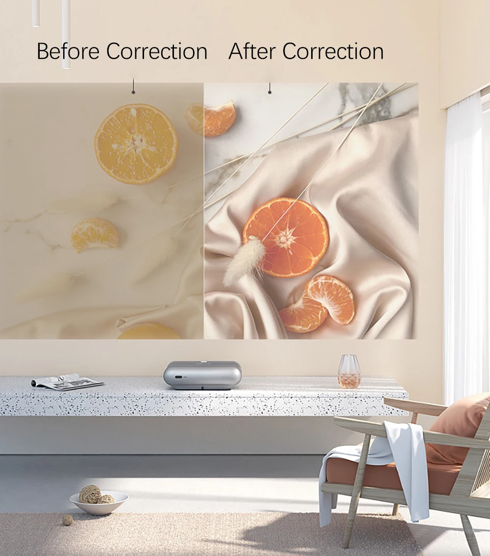 JMGO O1 Pro является пионером в калибровке цвета стен, которая позволяет автоматически адаптироваться к настройкам цвета и яркости отображения в режиме реального времени. Независимо от уровня окружающего освещения, он точно отображает цвета для оптимального просмотра.