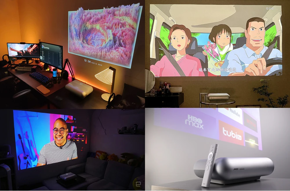 0,21 ультра-короткий бросок:Массивный размер экрана от 70 до 110 дюймов, когда он расположен всего в 4-11 дюймах от стены или проекционной поверхности. Больше не теряют тени при ходьбе. Получите плавный и непрерывный обзор с JMGO O1 Pro.