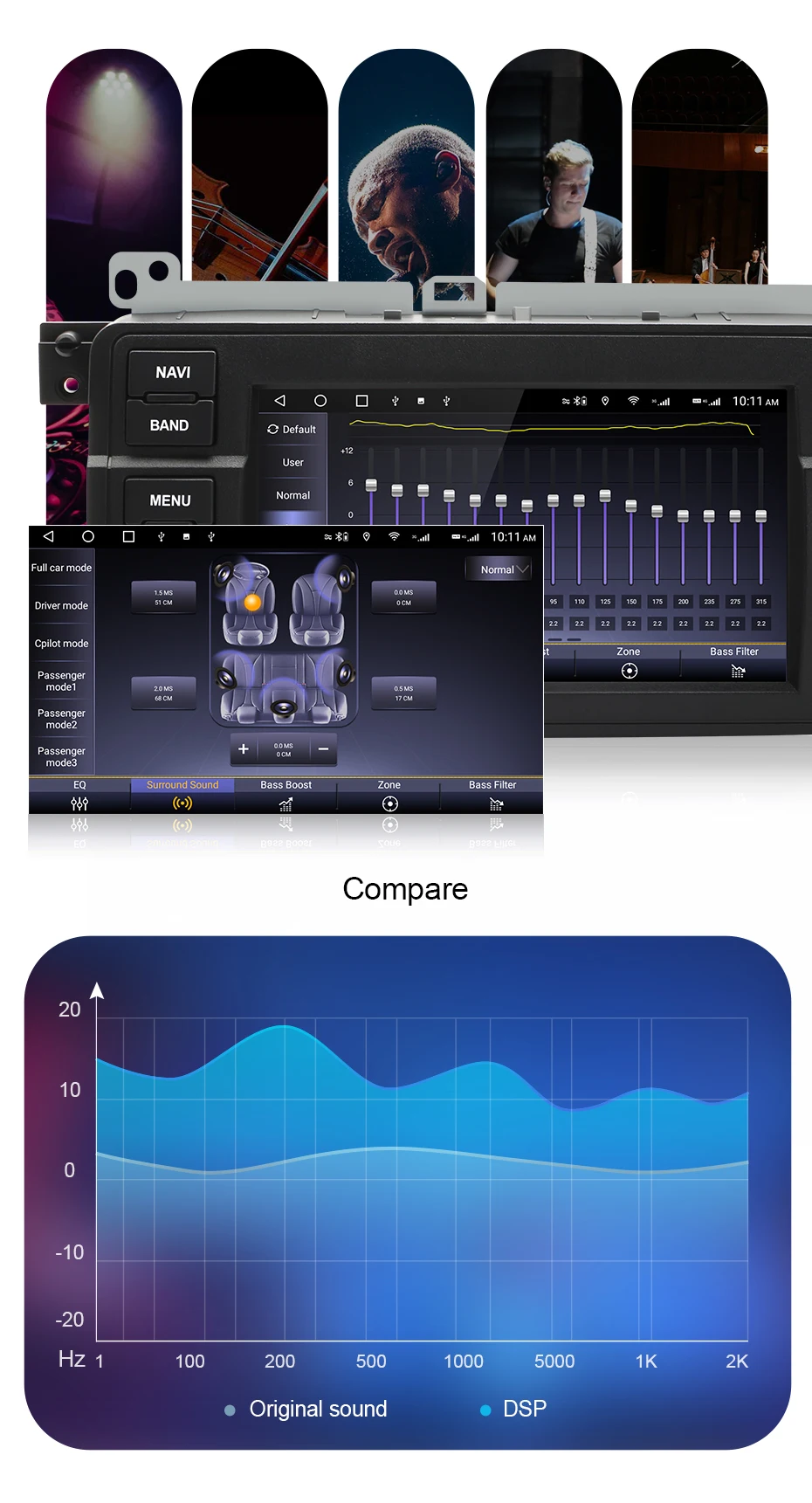 2. Сенсорный экран 5D, он толще и прочнее обычного экрана, идеально подходит для автомобильной консоли.