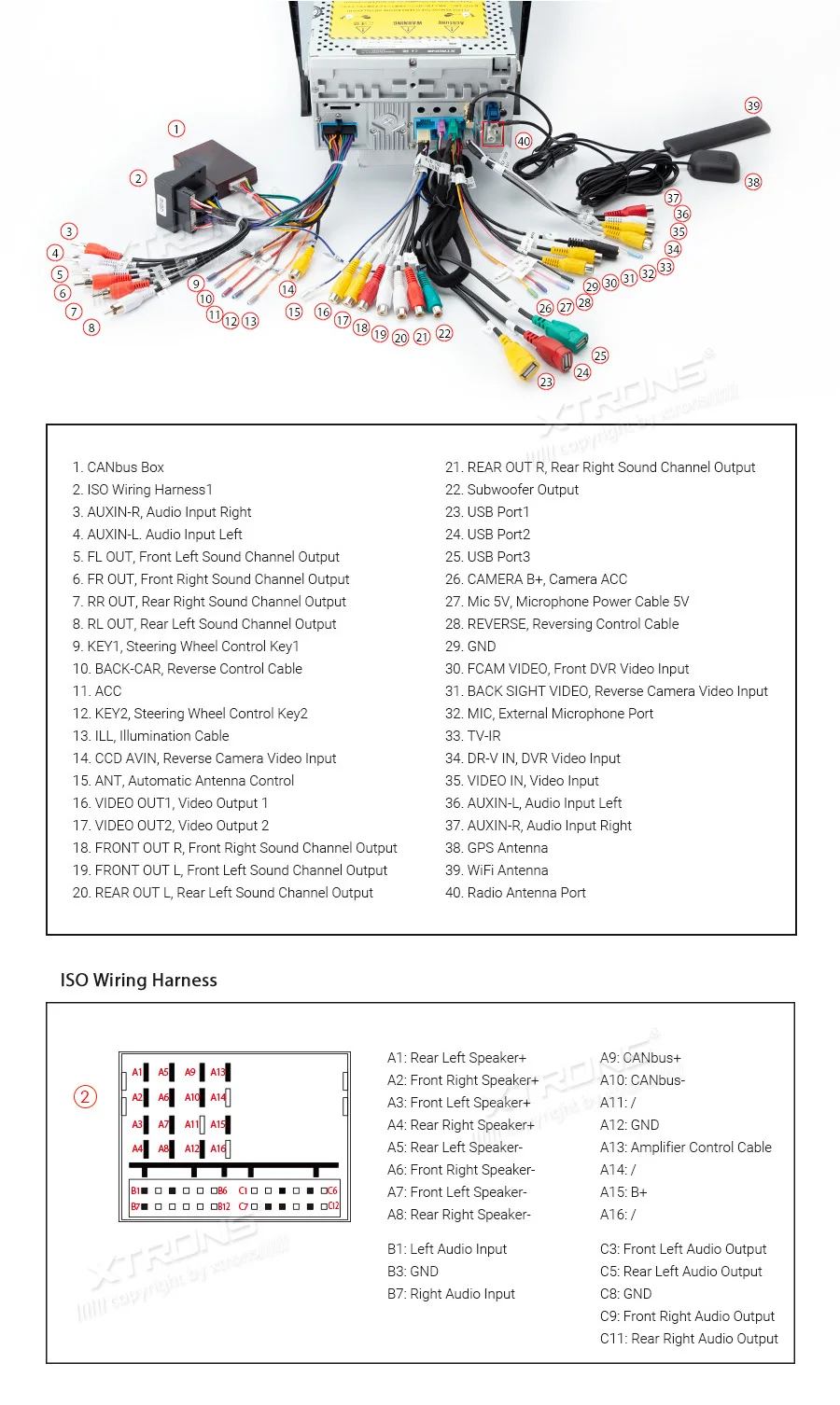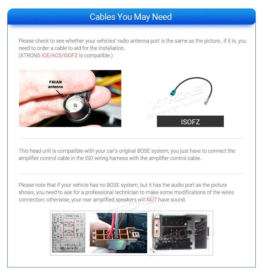 1. Пожалуйста, проверьте порт радиоантенны вашего автомобиля, вам может потребоваться заказать кабель для помощи в установке. (XTRONS ICE/ACS/ISOFZСовместим)