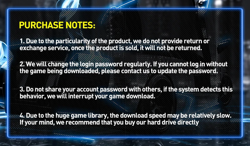 4. Из-за большой игровой библиотеки скорость загрузки может быть медленнее. Если вы хотите испытать игру быстрее, мы предлагаем вам купить наш жесткий диск напрямую