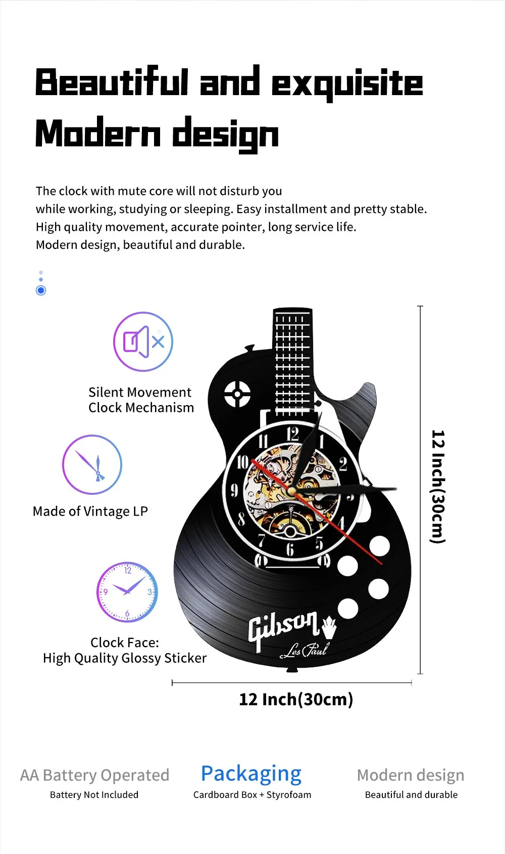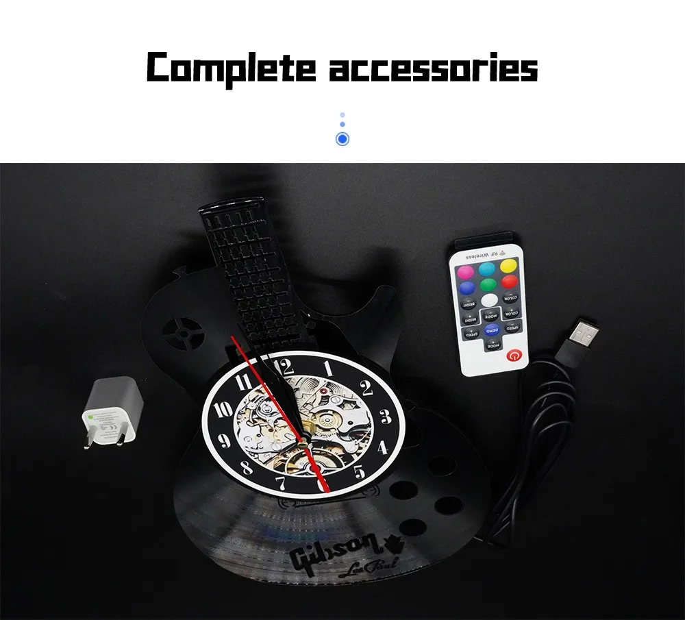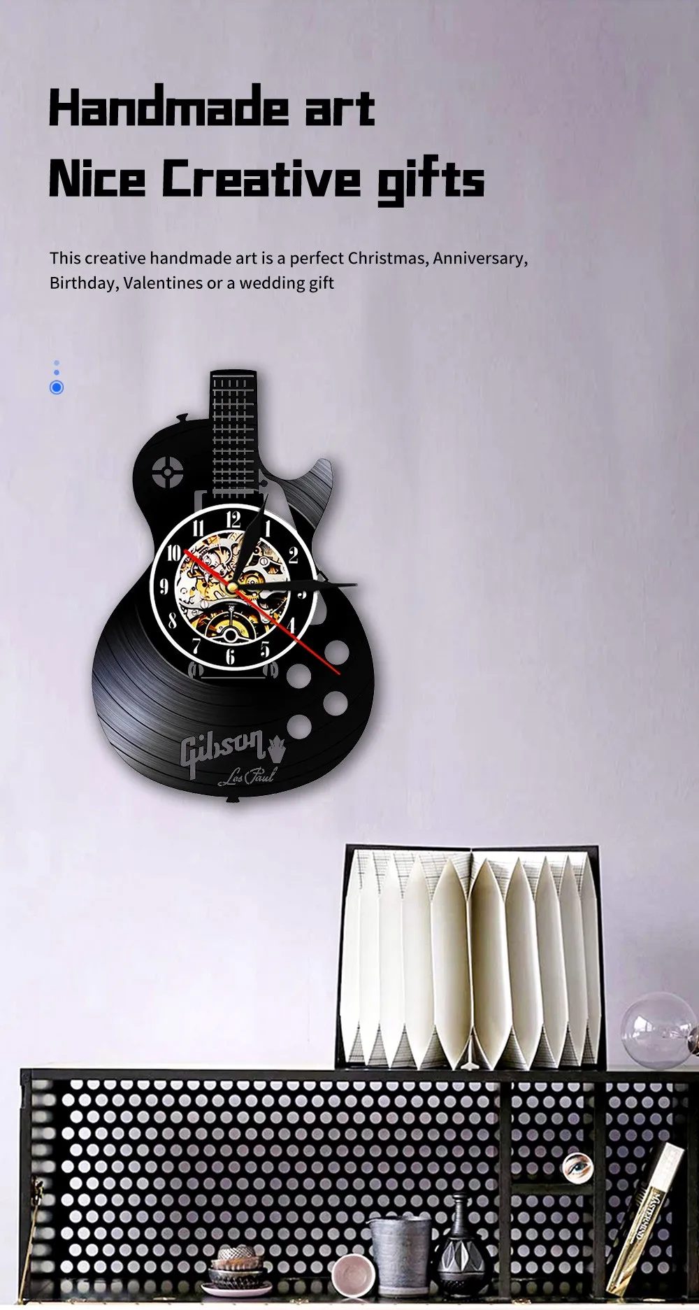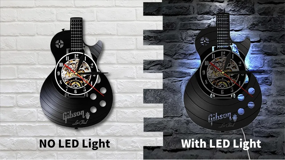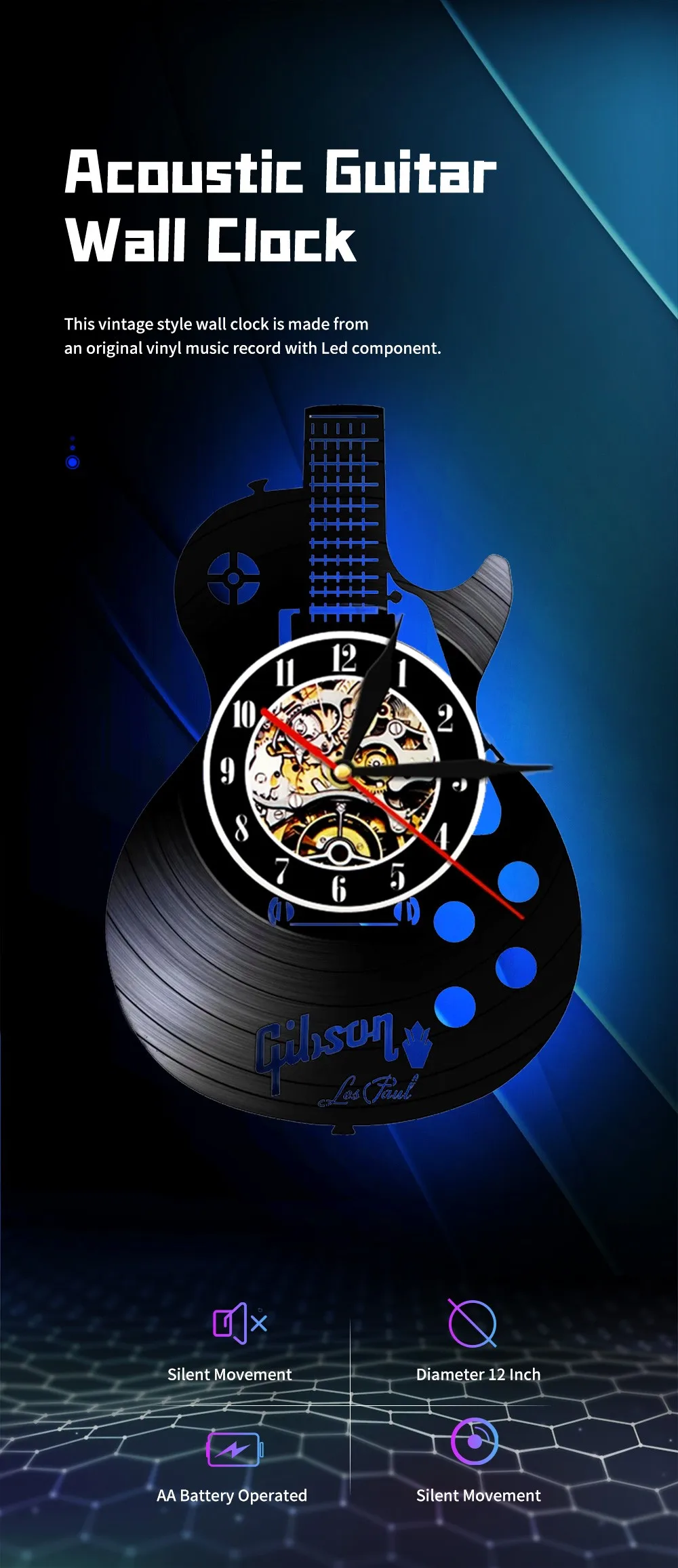 Акустическая гитара виниловая запись настенные часы гитара музыкальный инструмент тихий светодиодный настенные часы современный дизайн Рок н ролл музыкальный подарок