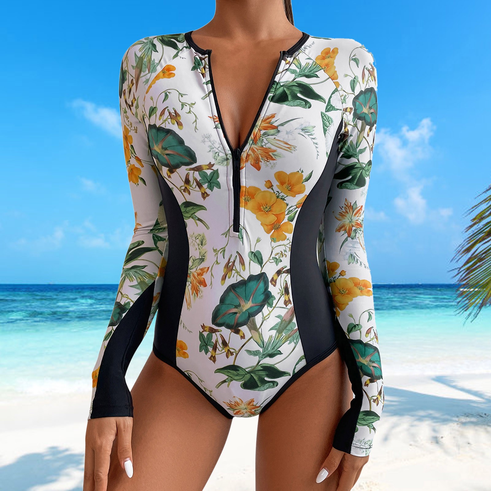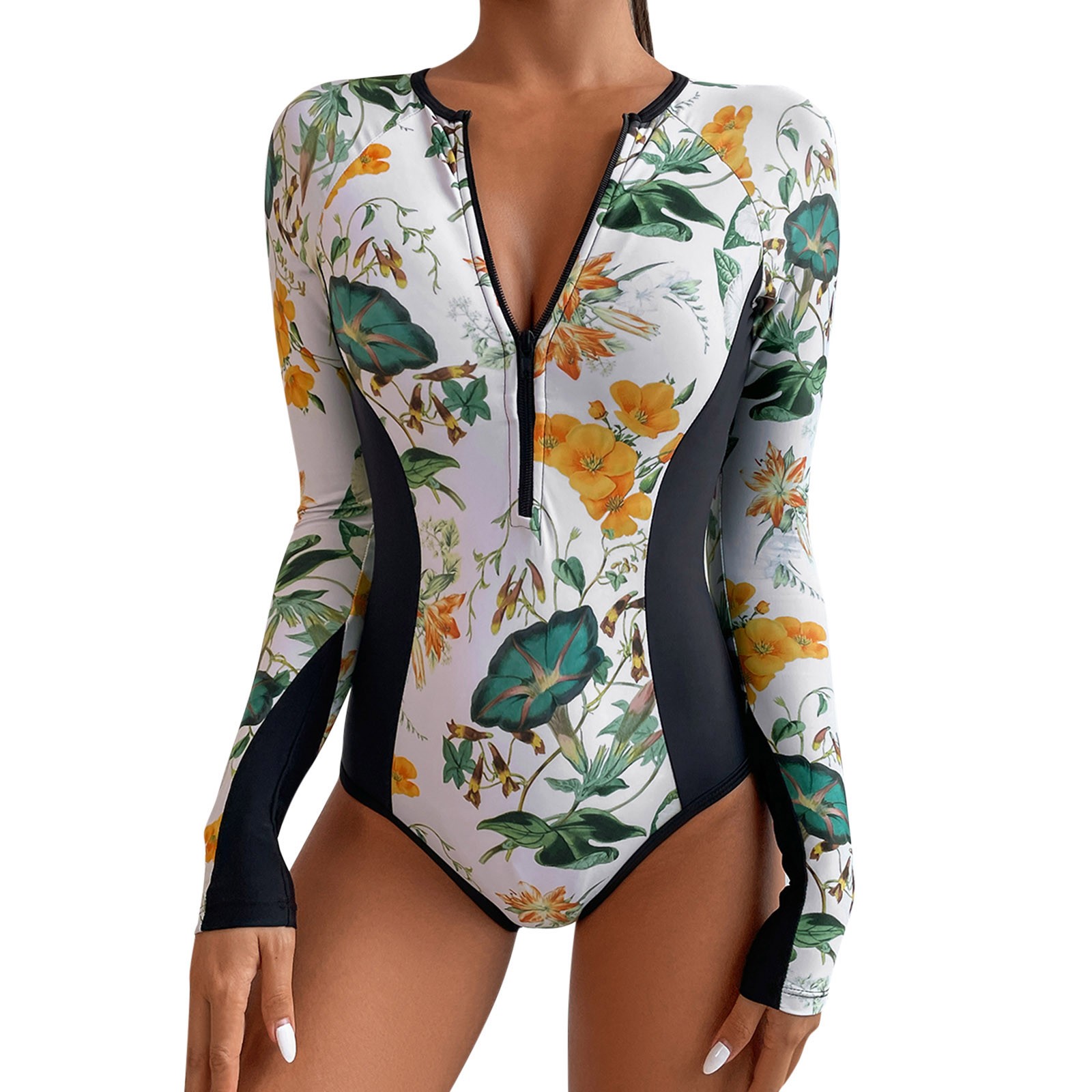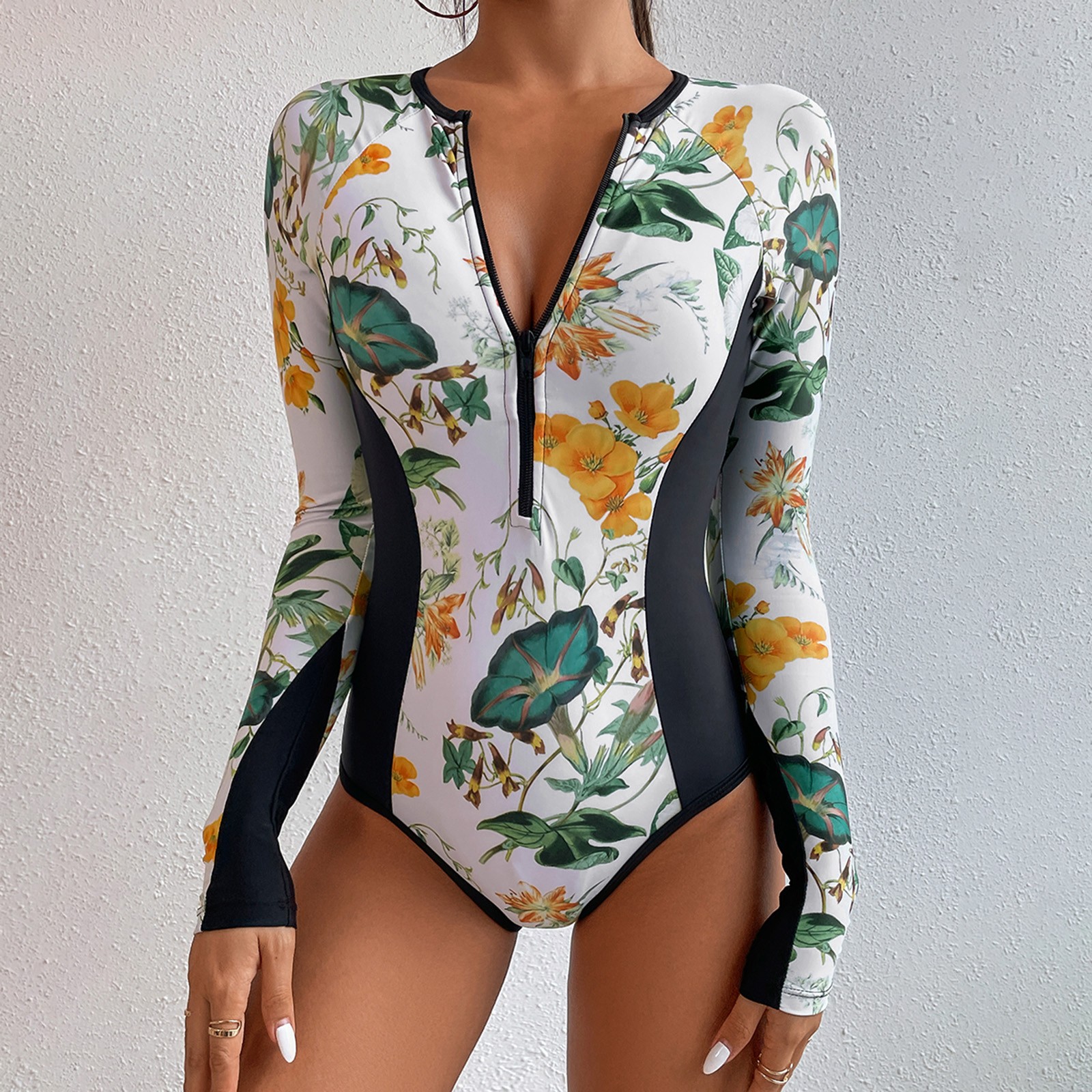 Женские Купальники с цветочным принтом и длинным рукавом, солнцезащитный костюм для серфинга, купальный костюм