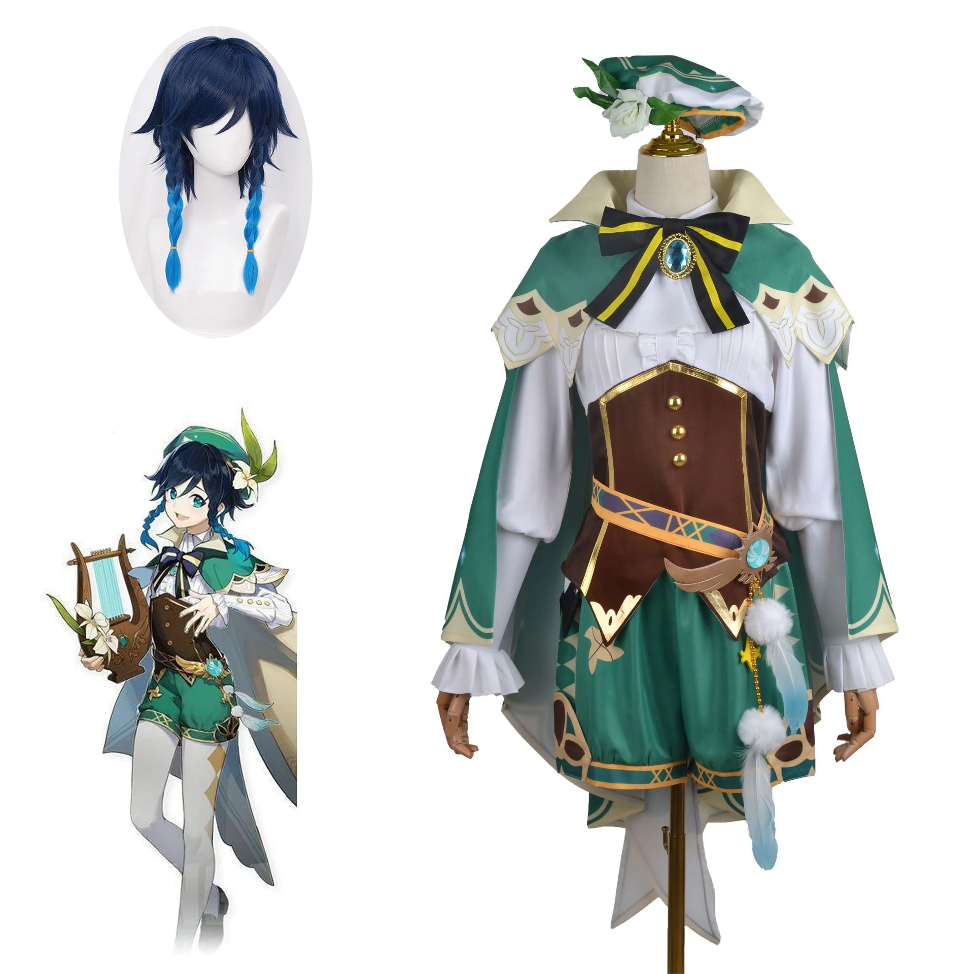 Genshin Impact Venti Cosplay Costume Wig God Of Wind Barbatos Women Game Uniform Suit Full Set Halloween Carnival Clothing