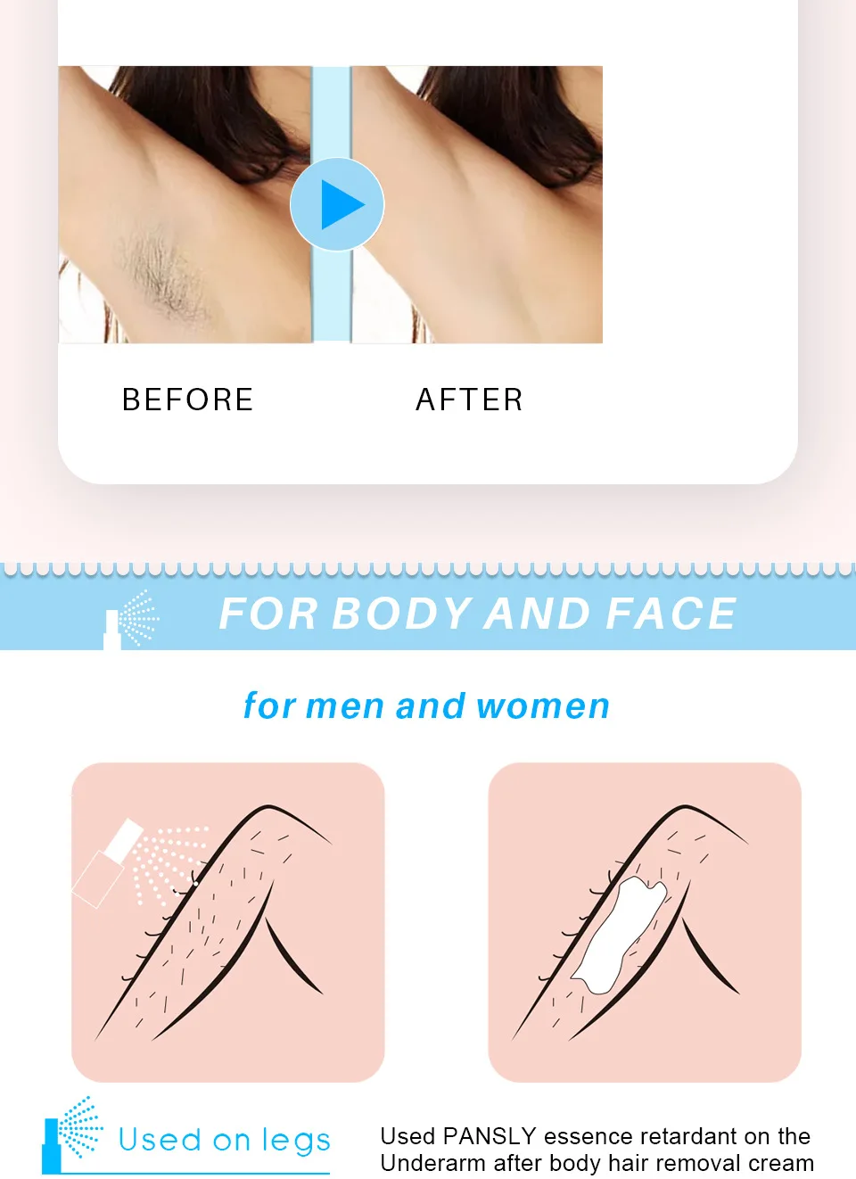 Pansly Hair Growth Inhibitor Beard Bikini Intimate Face Legs Body Armpit Facial Removal Painless Stop Hair Spray