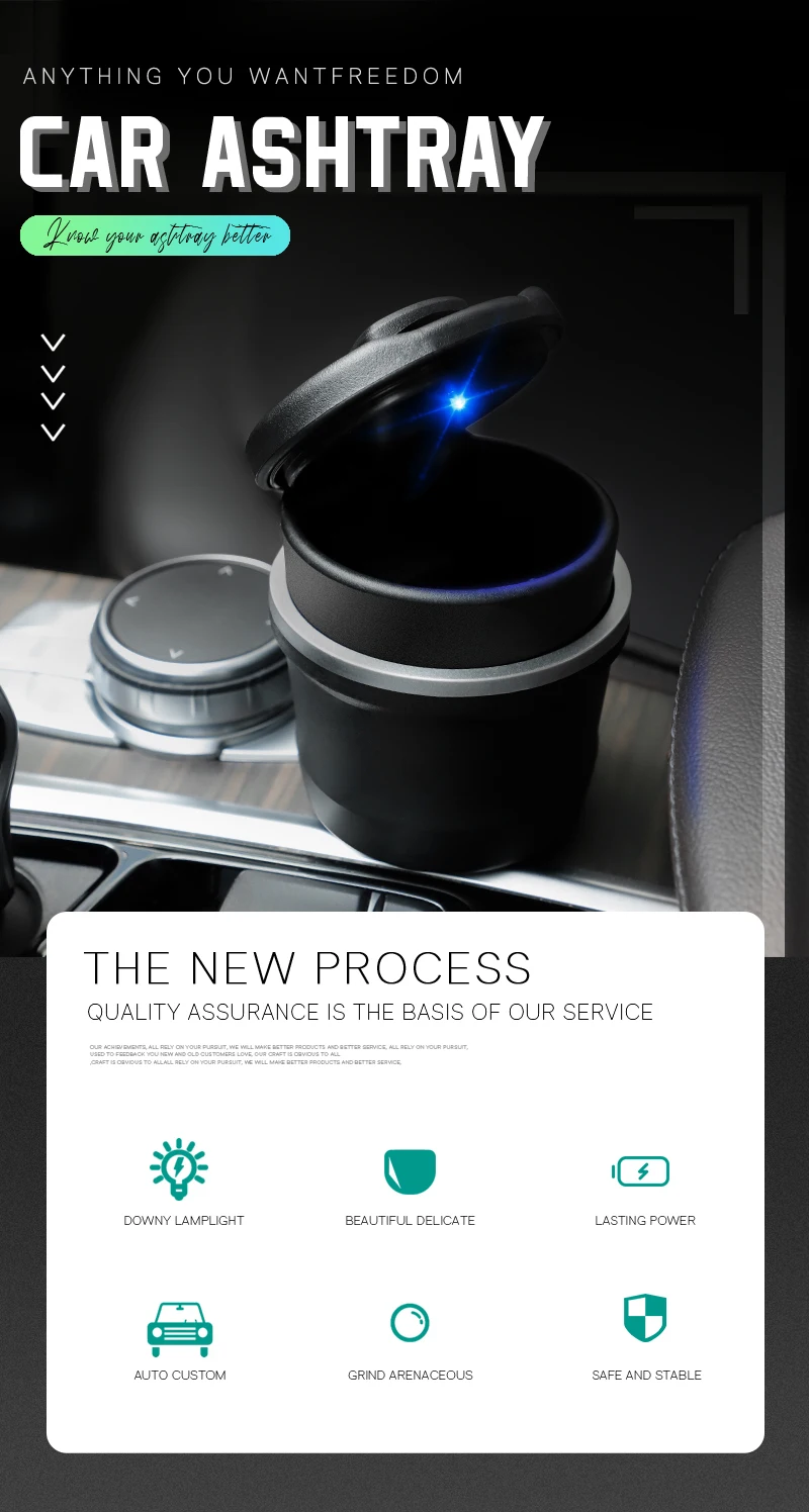 1. Автомобильная пепельница оснащена светодиодный светильник, который может быть использован в темноте и не позволит золе упасть.
