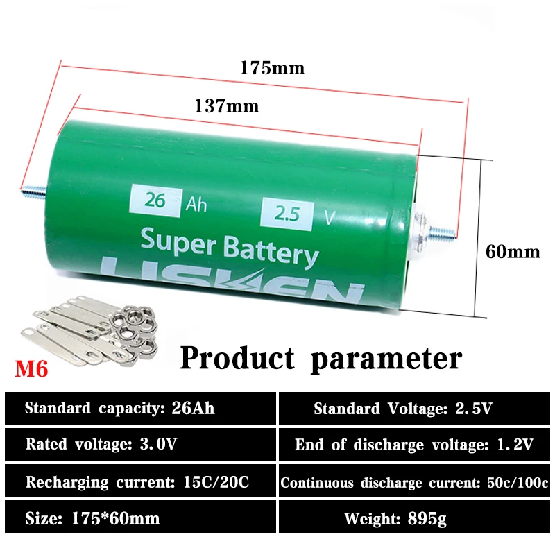 1. 2,5 V 26Ah аккумулятор лто * 6