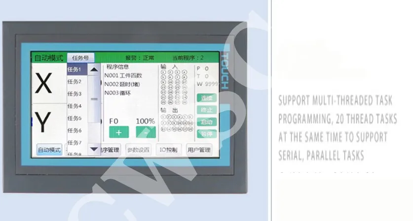 Многофункциональный контроллер движения micro CNC M3C-это наша система управления общего назначения третьего поколения. Ранее наши продукты могли выполнять только одно-Резьбовые задачи, то есть вы должны ждать, пока текущее действие завершится, прежде чем выполнить следующее действие. Теперь он может выполнять задачи с одной резьбой. Задачи резьбы и несколько задач резьбы могут быть выполнены параллельно. Он может выполнять до 20 задач одновременно. Полное сенсорное управление может поддерживать четырехосную связь и несвязанное движение оси. Программирование простое и простое в использовании, что значительно удовлетворяет потребности пользователей в сложных мерах, широко используется в промышленном контроле, медицинской электронике, энергосбережении и защите окружающей среды, интеллектуальном транспортировке, энергосистемах, системах связи, текстильная промышленность, индустрия числового контроля, автомобильная электроника, транспортное оборудование, коммуникационное оборудование, Сетевые терминалы и другие поля. Пользователи могут настроить специальные самолеты, и сделали восемь осей контроллеров движения для клиентов.