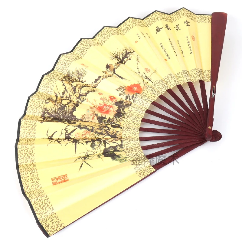 Характеристики Товара: около 333*32*32 мм в сложенном виде, 333*590*32 мм в разложенном виде, материал-бамбук + ткань + железо, случайный узор вентилятора