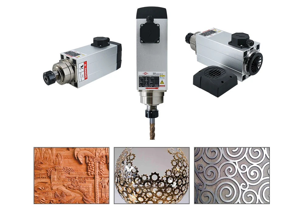 Ответ:Этот шпиндель с воздушным охлаждением подходит для деревообработки, алюминия и некоторых мягких металлов и может использоваться с различными фрезами