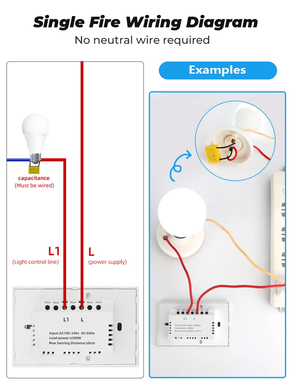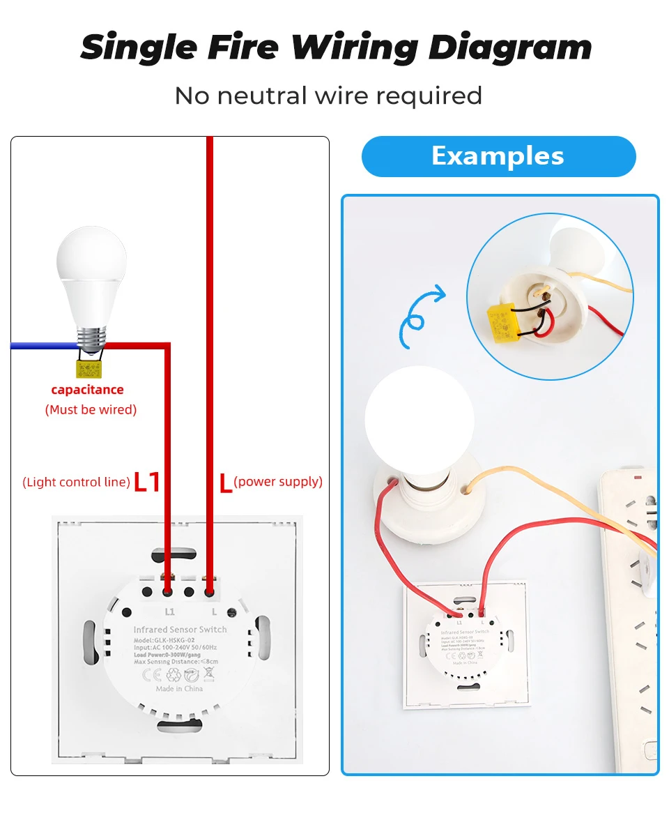 2. [Нет нейтральной линии/нужна нейтральная линия]: подходит для новых домов, старых домов, может быть установлен