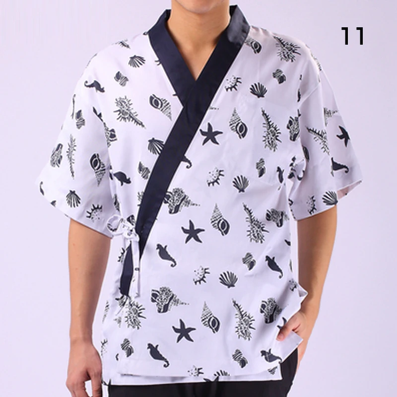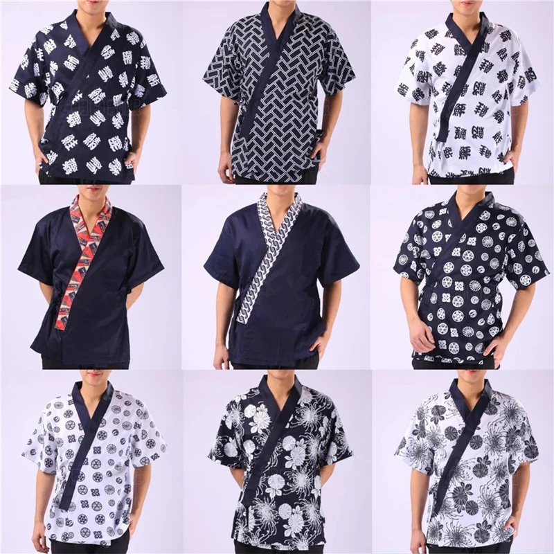 Унисекс суши шеф-повара КУРТКА цветочный дизайн кимоно японский корейский стиль шеф-повара униформа