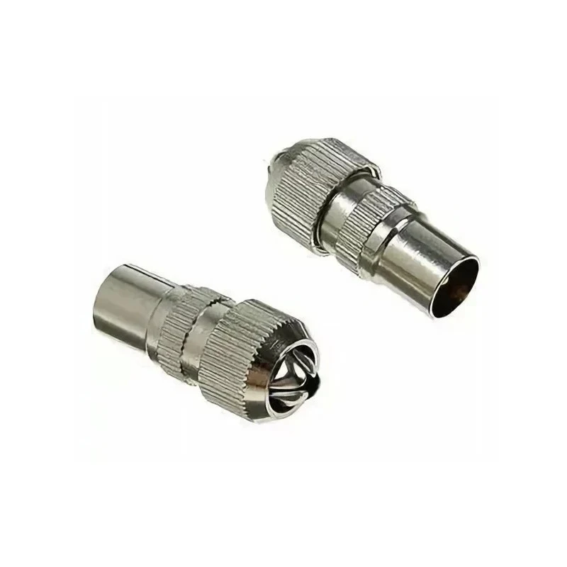 It is designed to connect air, satellite and cable television with a radio frequency cable. This connector is mounted on a TV cable and sends a signal to the TV device via the cable. Installation of the wire in the connector is done with a screw clamp, which will save time for installation. The connector body and contacts are made of nickel-plated copper alloy, and the central pin is coated with technical gold plating, providing reliable and durable contact. The socket connector has special clamping petals, which firmly hold it on the cable. Simple installation and reliable connection, will provide protection against interference and external influences