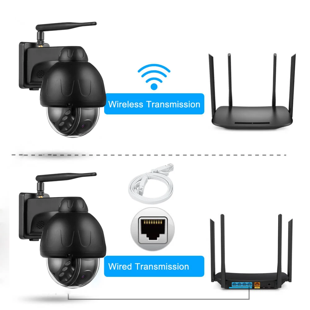 Камера Поддерживает как 2,4 ГГц Wi-Fi беспроводное подключение и RJ45 сетевой кабель подключения.