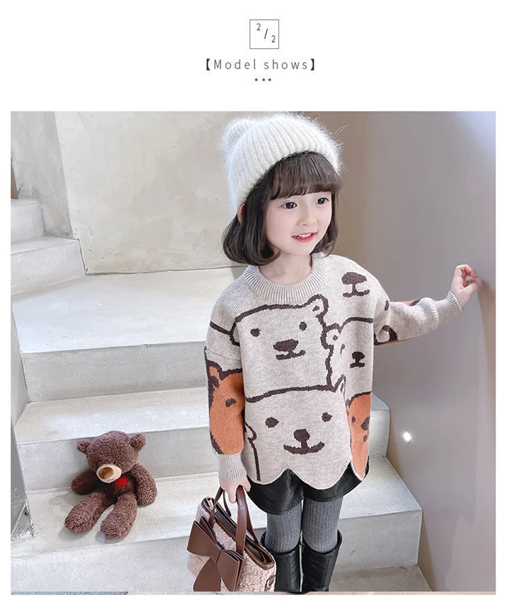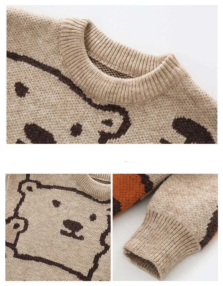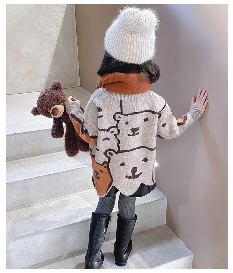 Вязаный свитер с милым медведем для девочек Новинка 2022 года, детский топ, теплое весенне-осеннее пальто для мальчиков свободная и дешевая детская одежда