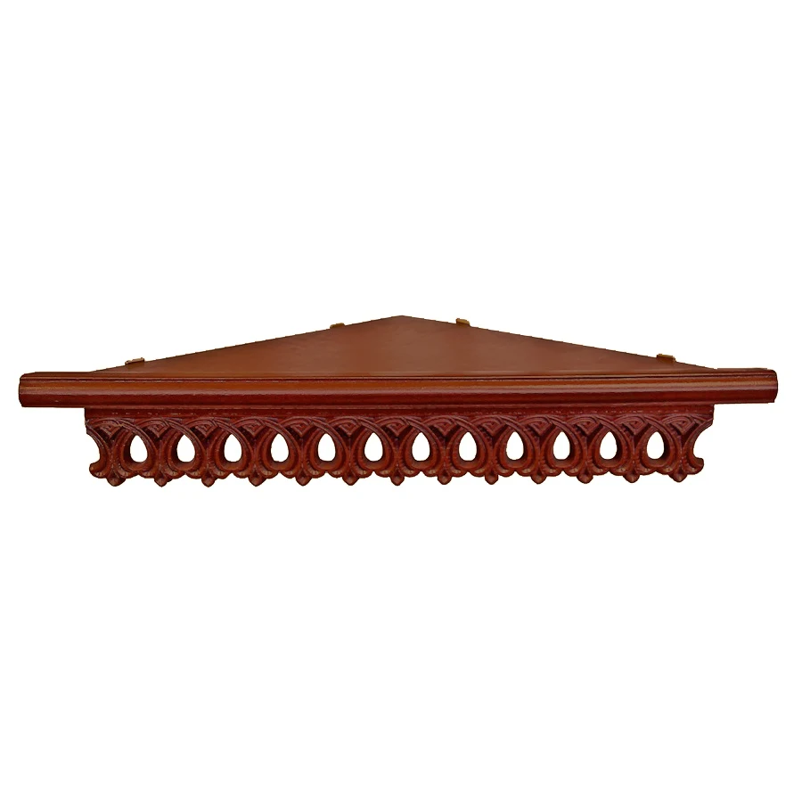 Резная часть изготовлена из натуральной древесины ясеня, столешница из мдф. Покрыта защитным лаком и украшена резным декором с христианской символикой. На полках с тканью используется церковный шелк. Басма (металлическое украшение) выполнена из латуни. Полки представлены в 3-х цветах, что позволяет выбрать вариант, подходящий под интерьер в любом стиле. Прочная и простая конструкция полки выдерживает вес нескольких икон, лампад и других домашних святынь, а специальный бортик по краю не даст иконам соскользнуть и упасть. В комплекте идут уже установленные петли для подвешивания на стену. Товар поставляется в собранном виде, сборка не потребуется. Рекомендации по уходу: протирать влажной тканью по мере необходимости. Полочка для икон станет отличным подарком на новоселье, день рождения, крещение или венчание и создаст красивый и благочестивый молитвенный угол в доме. Не забудьте приобрести вместе с полкой иконы и лампады у нас в магазине.