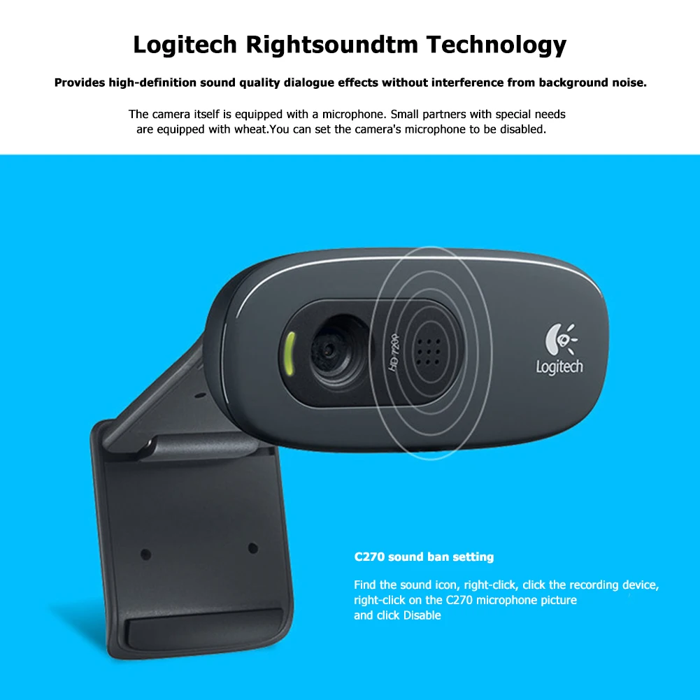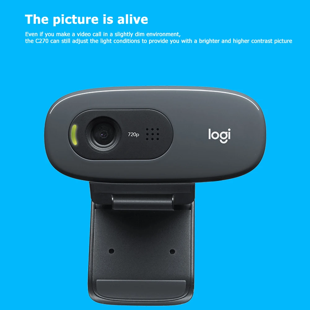 Logitech C270 720P HD веб-камера Встроенный микрофон компьютер ПК настольный USB веб-камера для трансляции видео вызова Конференции работы