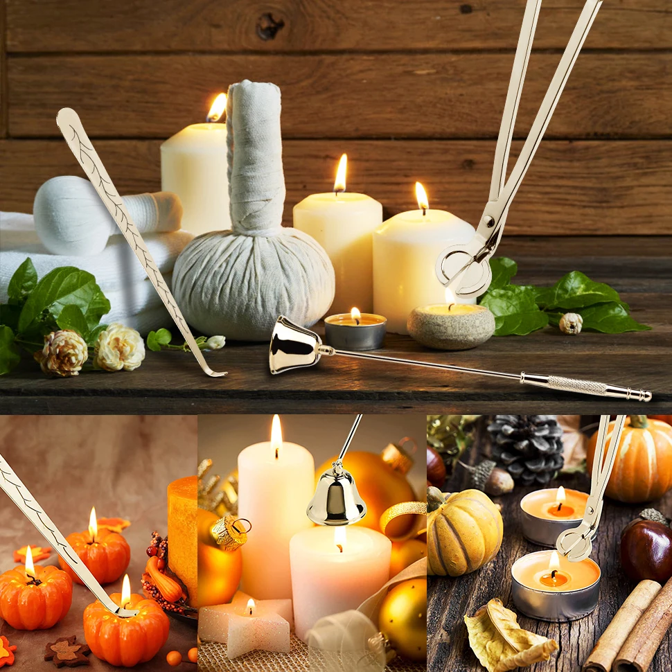 Материал: Эти подсвечники изготовлены из нержавеющей стали, они не легко ржавеют, не легко сгибаться и долговечны, они наиболее подходят для изготовления ножниц. Который содержит фитиль, триммер для фитилей и свечей.