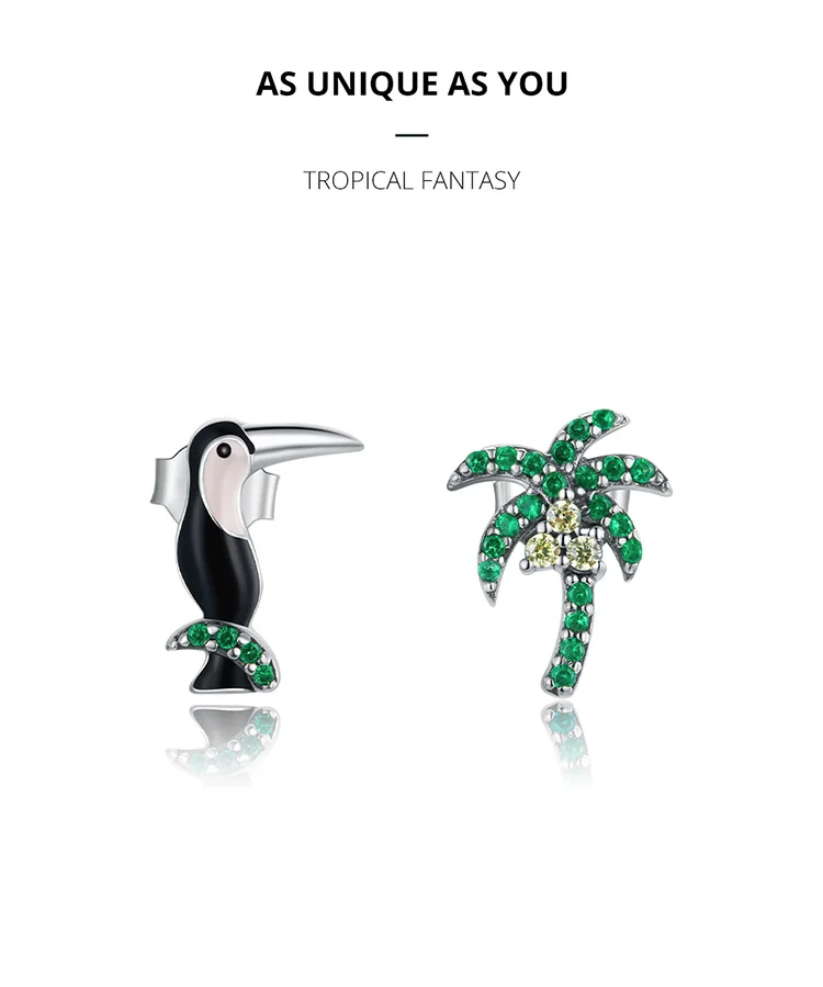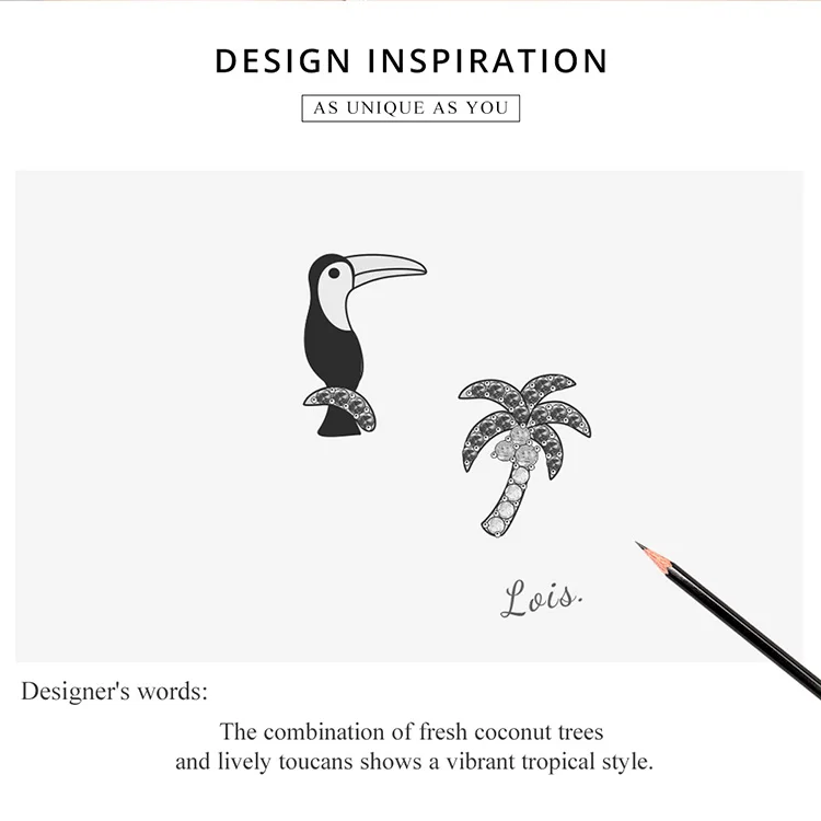 Сочетание свежих кокосовых деревьев и ярких туканов показывает яркий тропический стиль.