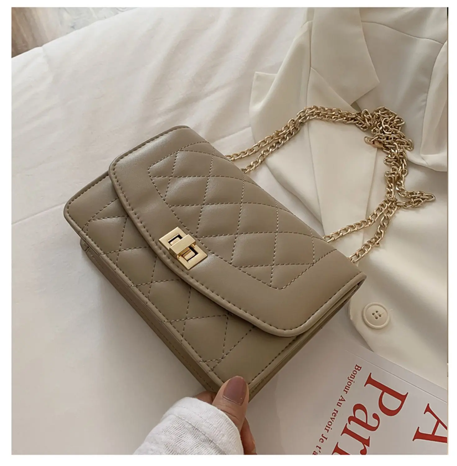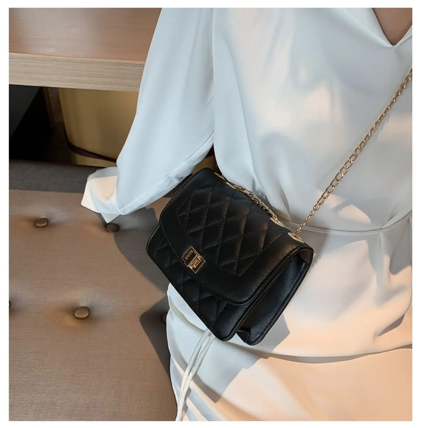 Посылка включает в себя: 1 * сумки через плечо с цепочкой ромбовидной цепи
