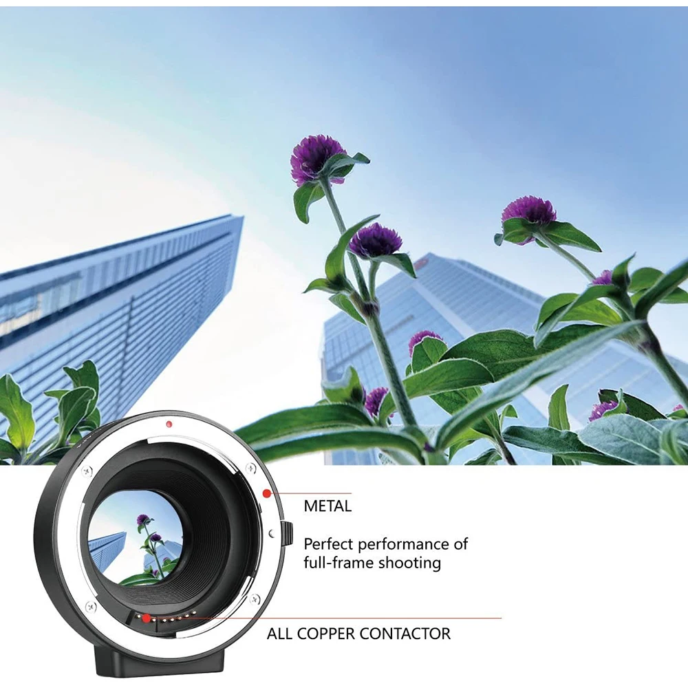 Полностью электронный адаптер для крепления Подключите Объективы EF, чтобы полностью воспроизвести стабилизатор изображения и производительность съемки AF.