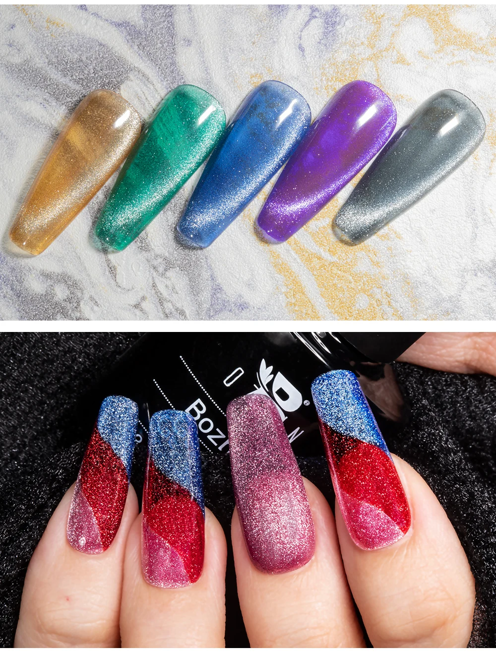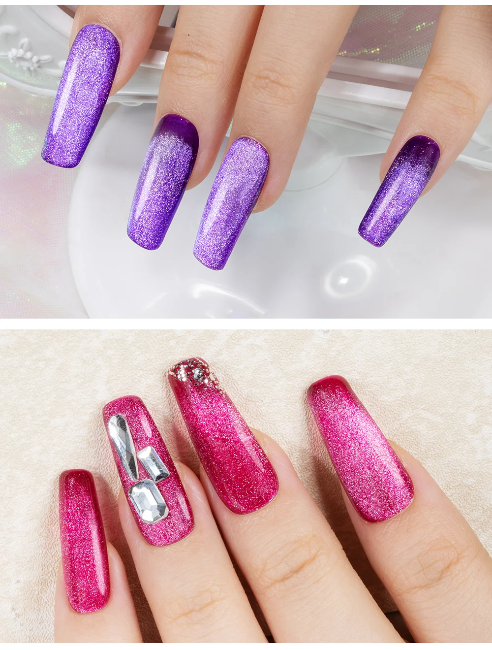 Цветной Кристалл кошачий глаз Магнитный Гель-лак 8 цветов дизайн ногтей Блестящий лак отмачиваемый УФ-гель магнит Гибридный смузи 9D кошачий глаз