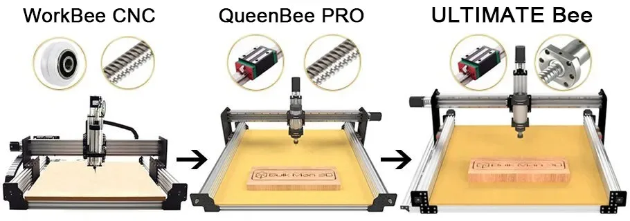 Не обманывайте другие компании, которые заявляют о большем шариковом винте, большем количестве рельсов/подшипников или различном рельсовом положении, что сделает их машину лучше, чем конечная пчела. Это предположения, сделанные без инженерных причин или фактов продавцами, а не инженерами. Исследуя Технические характеристики компонентов, вы можете сделать вывод, что на самом деле большие шариковые винты, больше рельсов/подшипников, различные рельсы позиционирования уменьшают производительность машины.