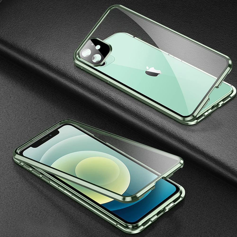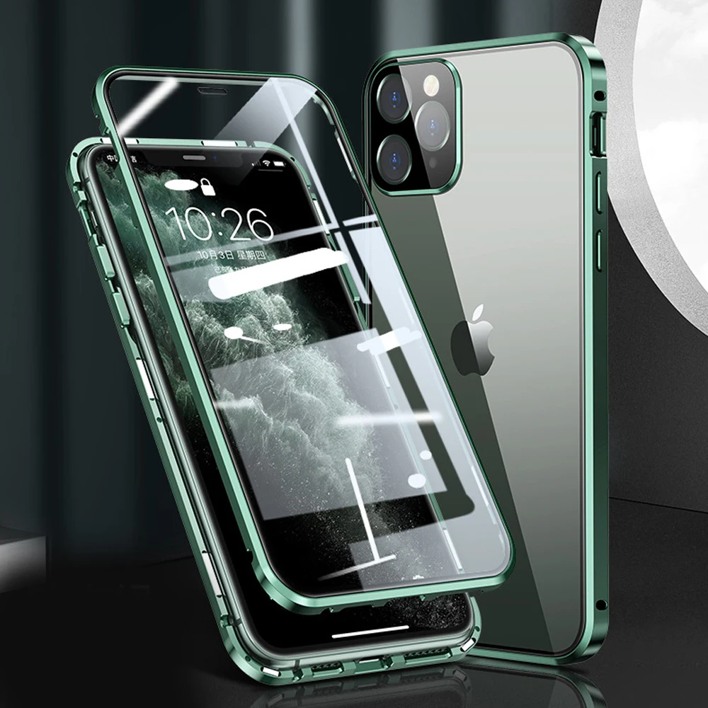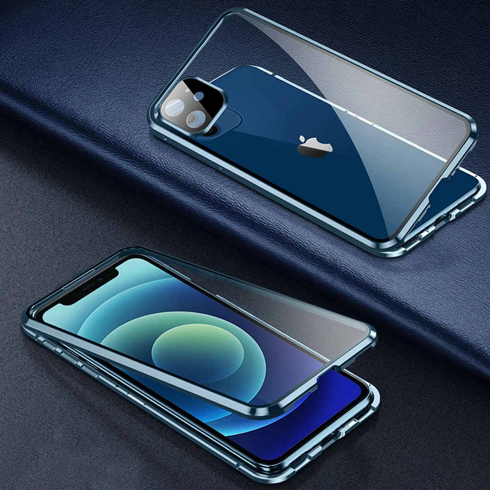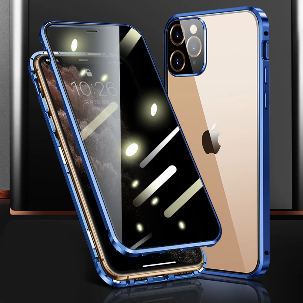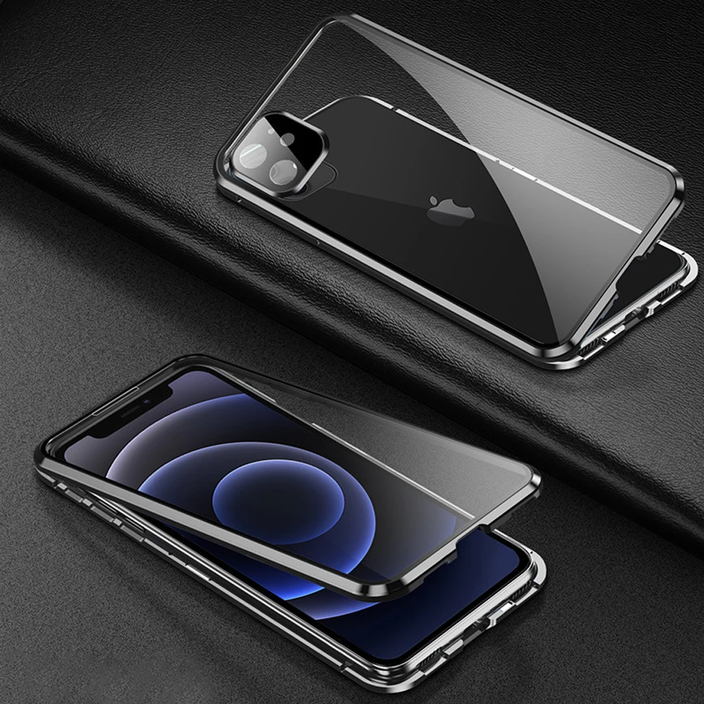 Для iPhone 11 12 Pro XS Max XR X 12 Mini 360 магнитный адсорбционный металлический чехол Двусторонняя Пряжка прозрачный чехол