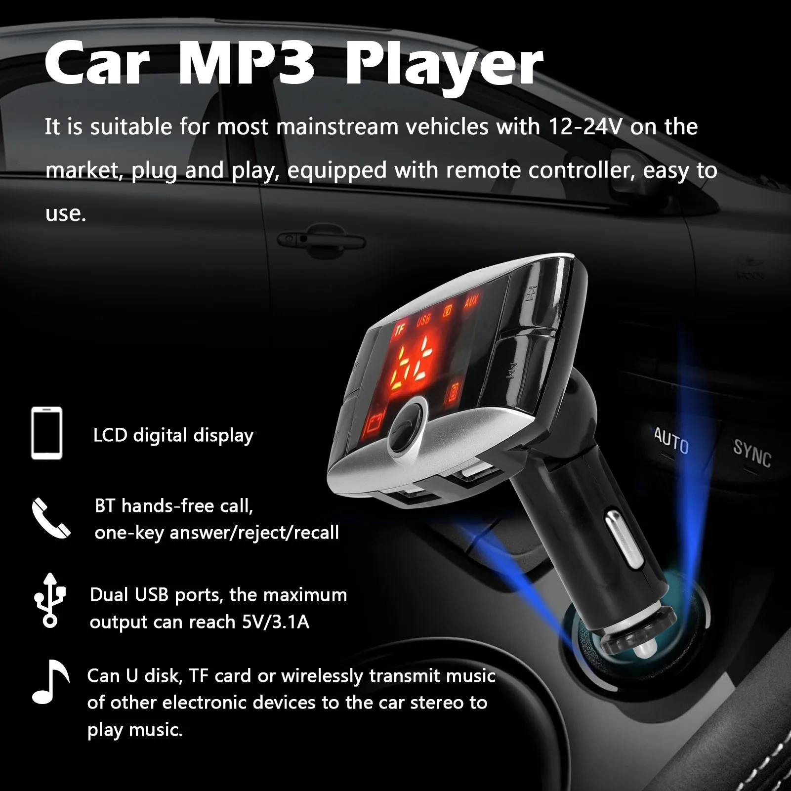 Интеллектуальный Автомобильный MP3-плеер, встроенный высокопроизводительный чип, качество звука без потерь, что дает вам приятный музыкальный опыт. Простое управление, и он поддерживает звонки без рук, что делает вождение более безопасным.