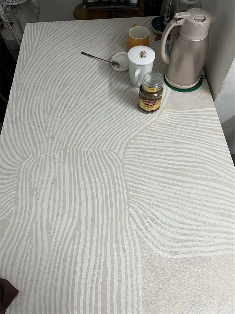 > Скатерть из ПВХ изготовлена из искусственной кожи, поливинилхлорида, износостойкая, высокотемпературная, водонепроницаемая и маслостойкая, безопасная и безвредная.