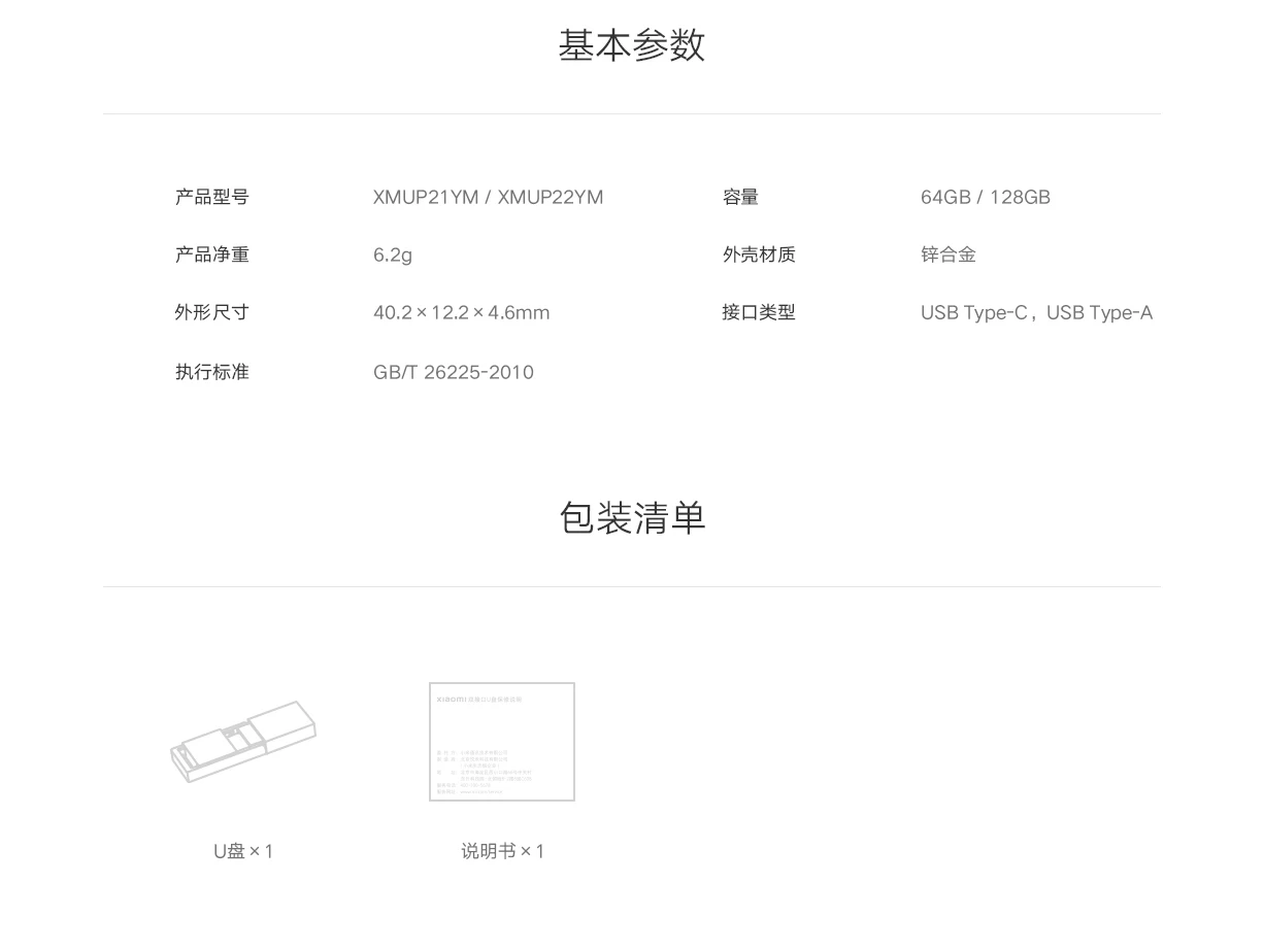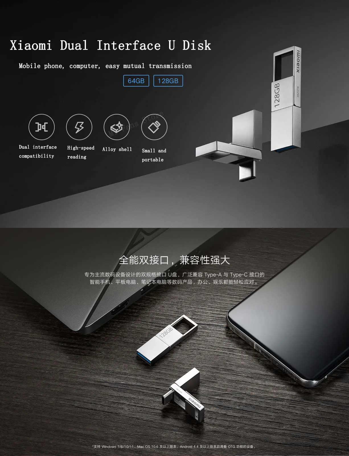 Xiaomi двойной интерфейс U диск 64G 128G Портативный USB 3,2 Type-C Интерфейс мобильный телефон, компьютер, взаимная передача