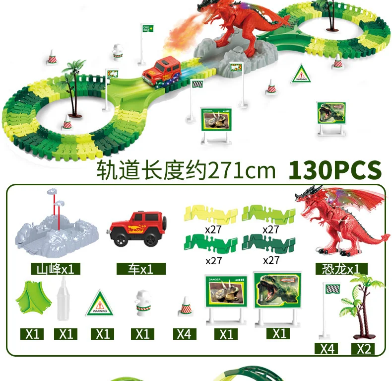 Игрушечный набор с динозавром для трека нацелен на то, чтобы доставить детей в мир Юрского периода, развивая их воображение и творческие способности.