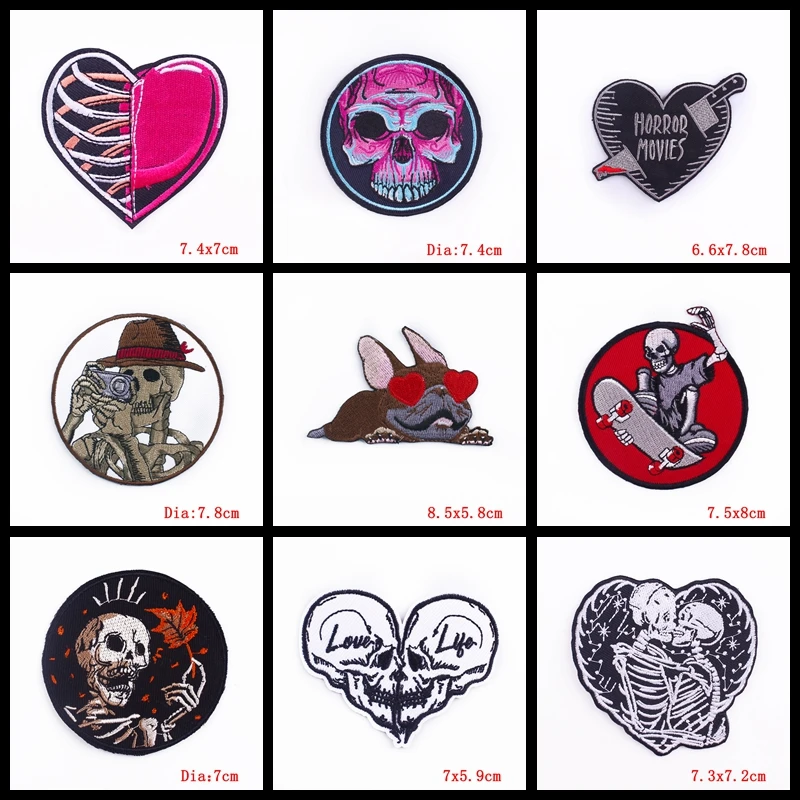 Нашивка в стиле панк любовь сердце череп аппликация патчи для одежды термоклейкие патчи страшные фильмы вышитые патчи на одежде