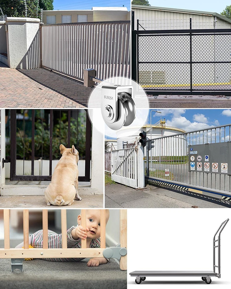 Application】 широкий Application】: колесо U groove подходит для питания/катания собаки/ребенка/сада ворота, промышленные тележки, монтажные приспособления, контейнеры, стеллажи, раздвижные ворота, консольные двери, перевернутый трек и контейнеры стеллажи и другое оборудование и проекты.