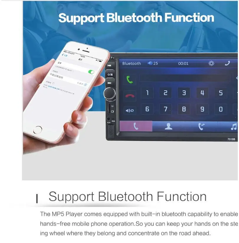 Автомобильный Радио HD 7 "сенсорный экран стерео Bluetooth 12 В 2 Din FM ISO мощность Aux вход Авто MP5 плеер SD USB